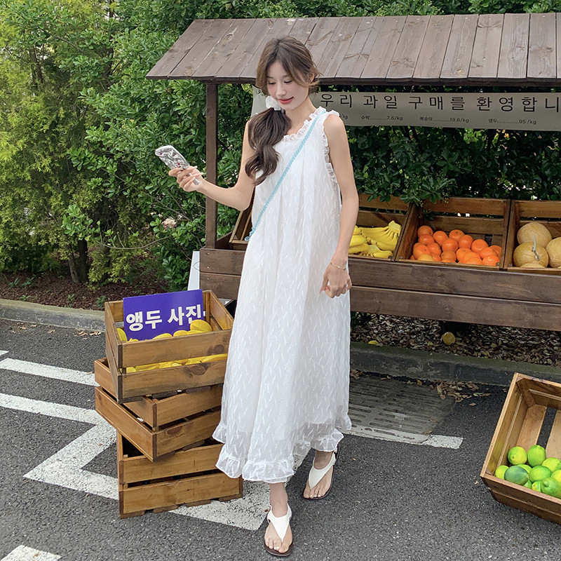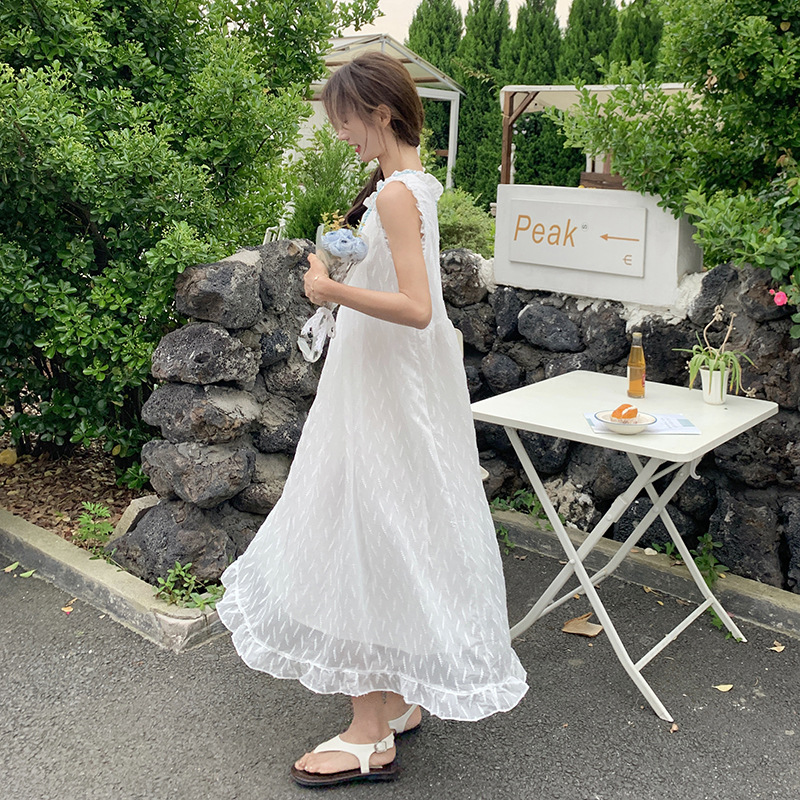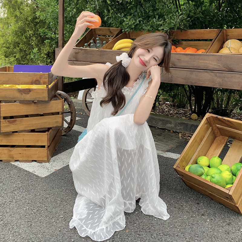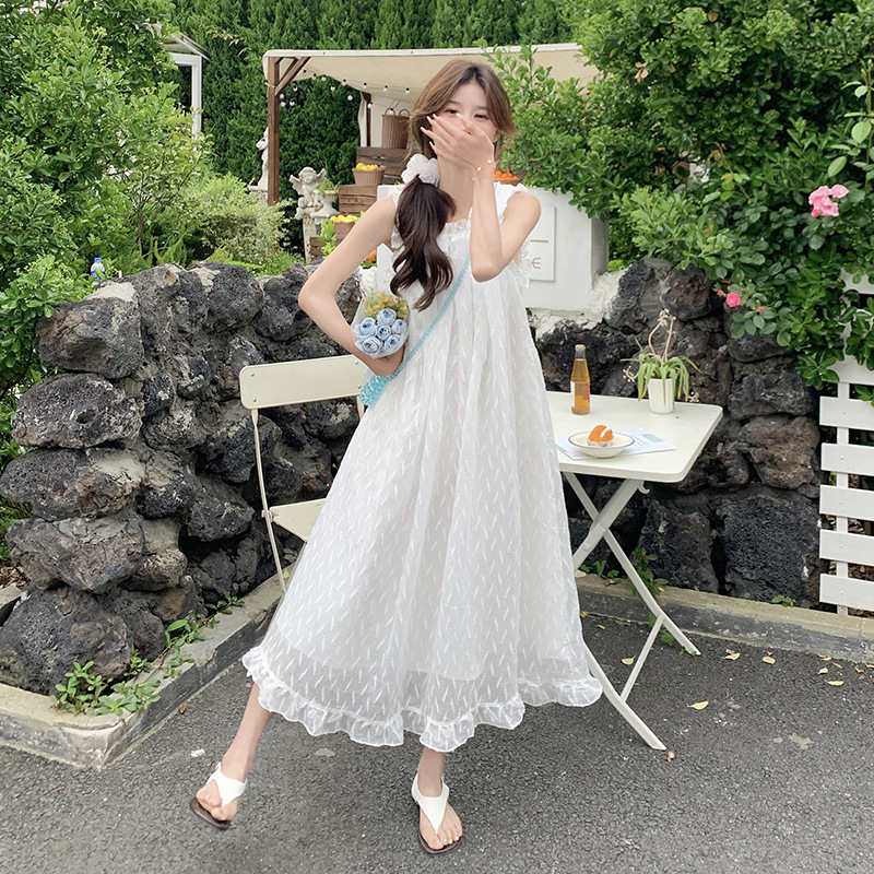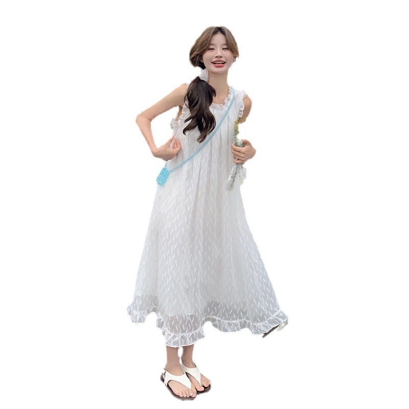 时尚百搭提花吊带连衣裙高级夏季新款温柔气质度假背带长裙子