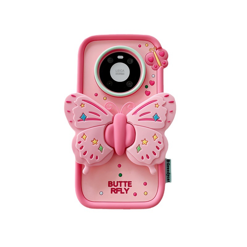 粉色蝴蝶折叠支架适用华为mate60Pro手机壳P50孙怡同款Nove11硅胶