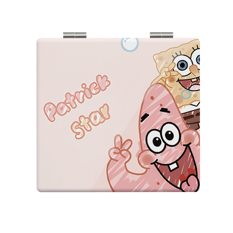 可爱卡通图案化妆镜迷你便携式小镜子方形少女风双面镜PU皮美妆镜