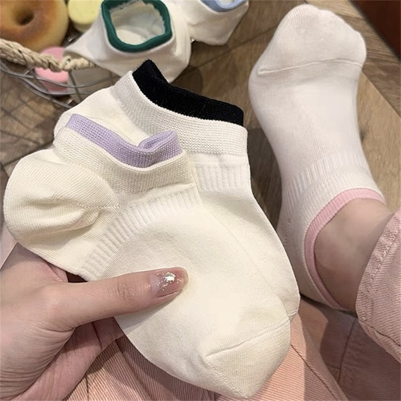 夏季船袜女浅口隐形袜撞色袜口短袜韩系甜美风低帮袜棉