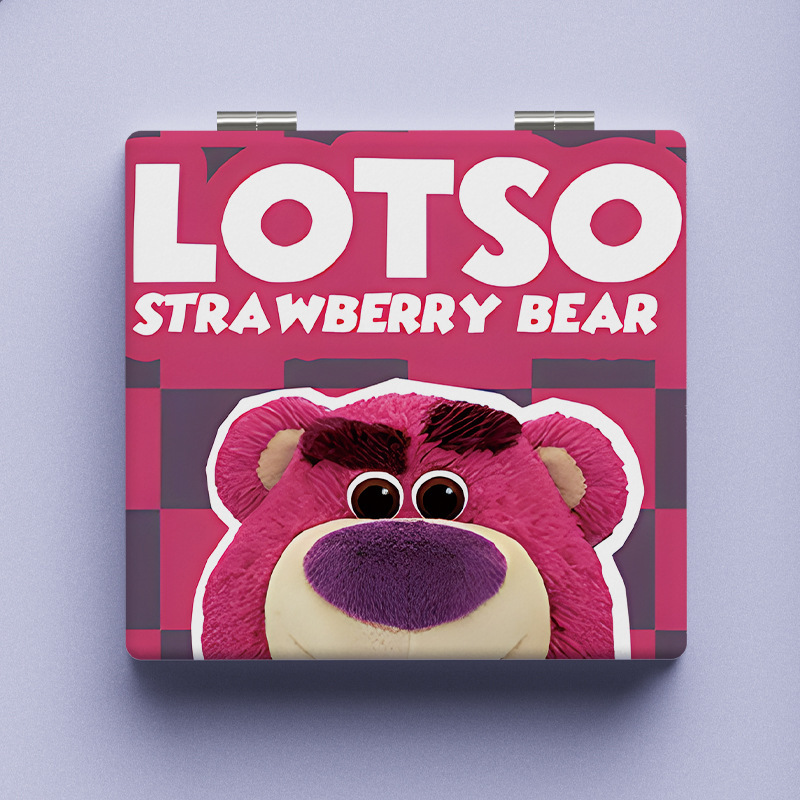 可爱草莓熊便携折叠式化妆镜女简约学生宿舍补妆小镜子随身随身带