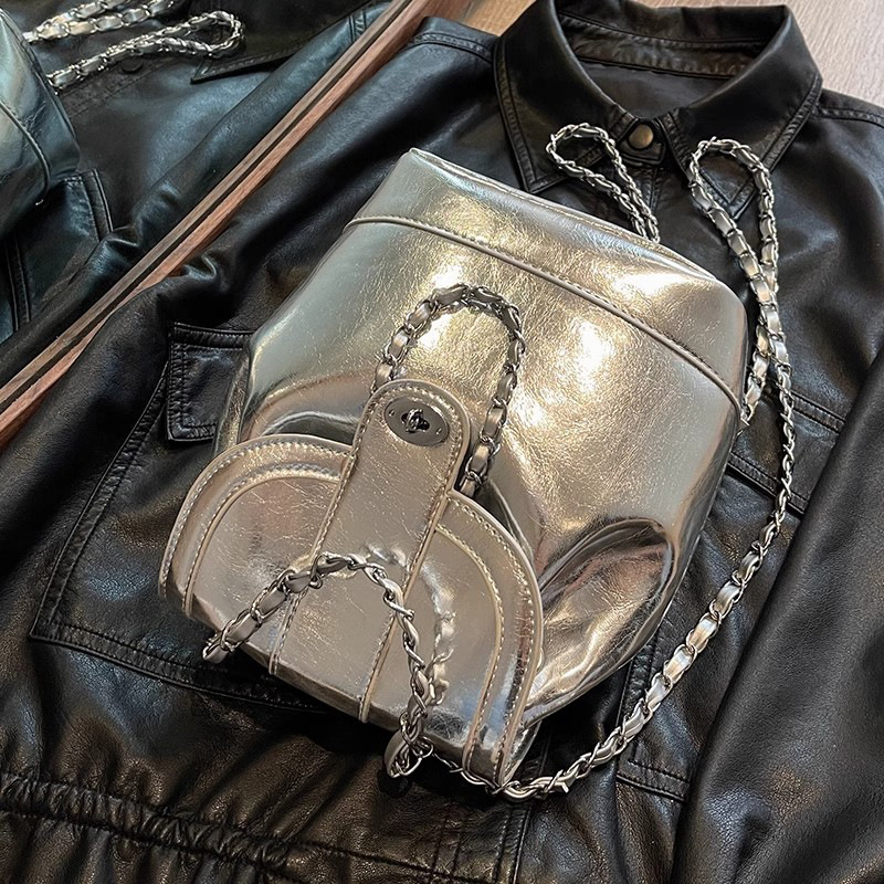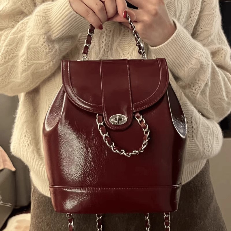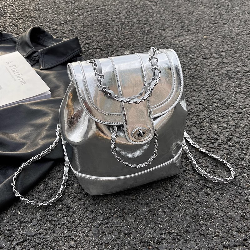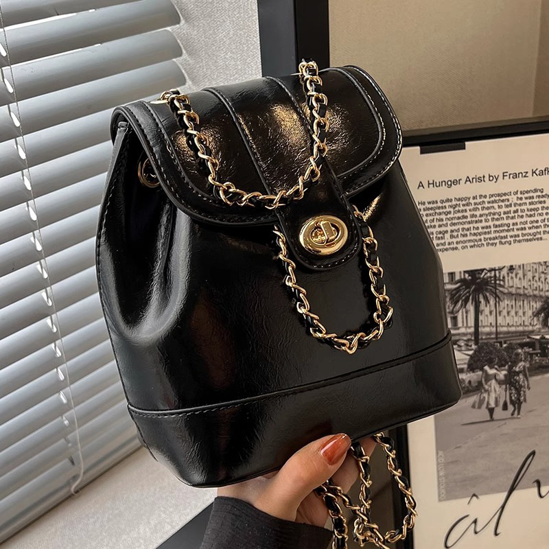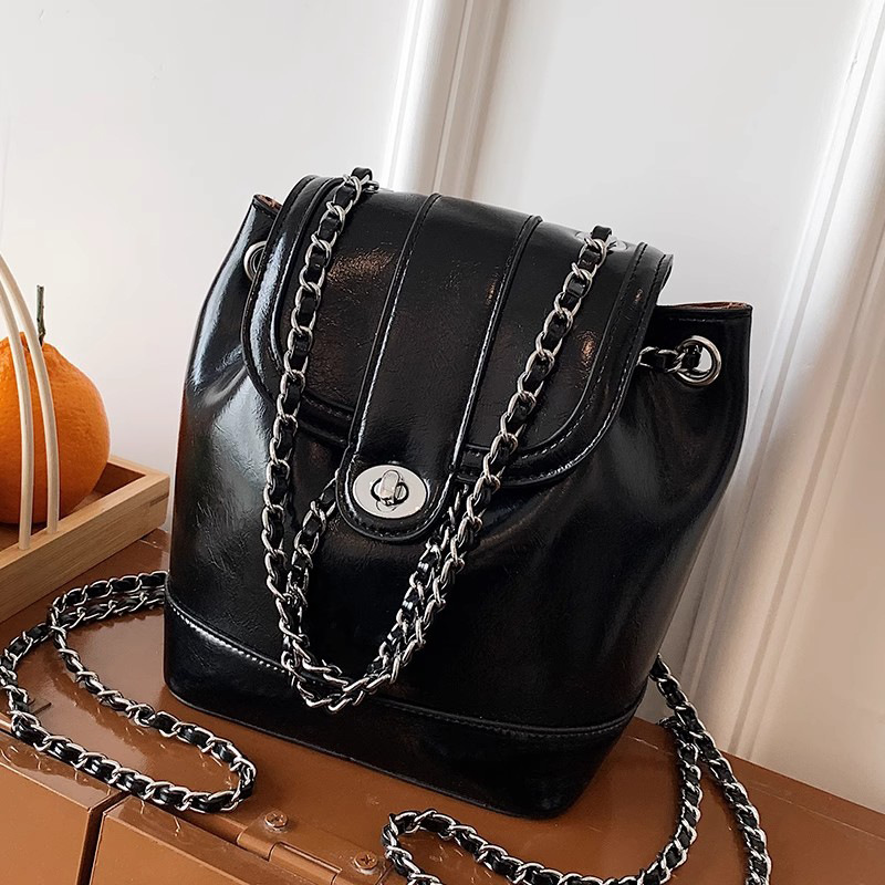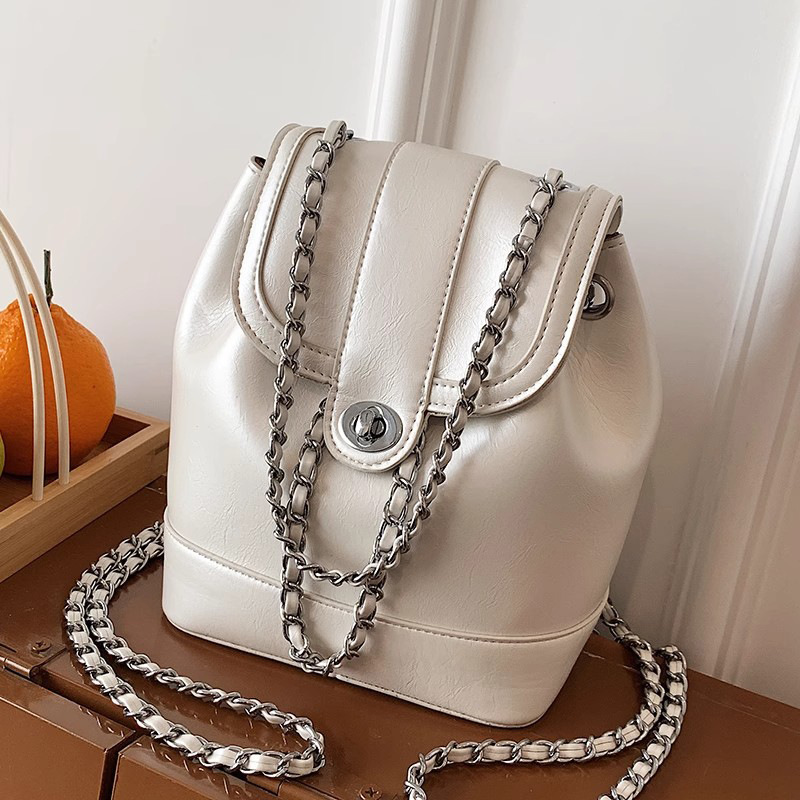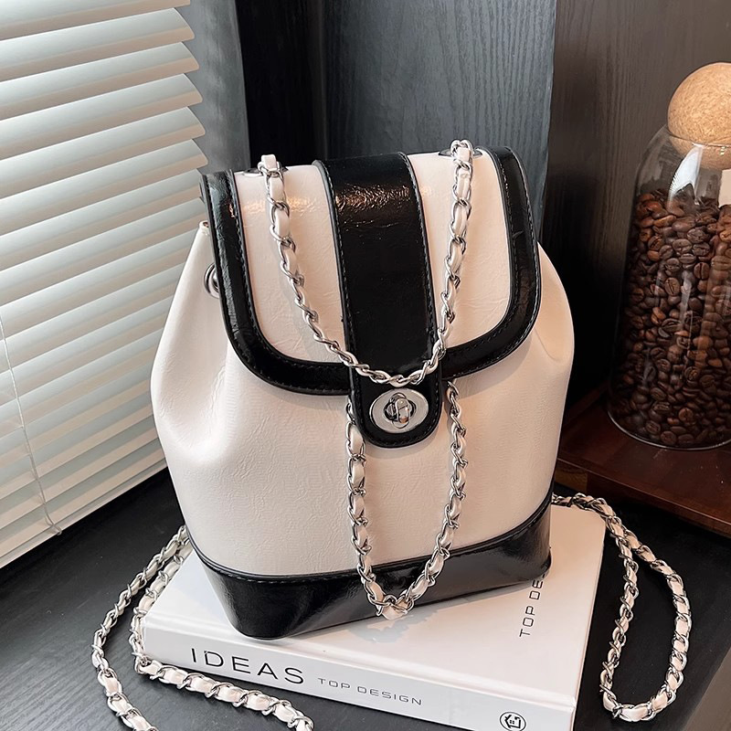 小众双肩包女生ins旅行 新款小香风链条高级感水桶包百搭背包