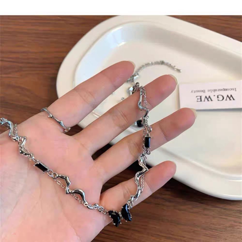 暗黑辣妹~风双层黑色蝴蝶项链女ins锁骨链女高级小众设计感配饰潮