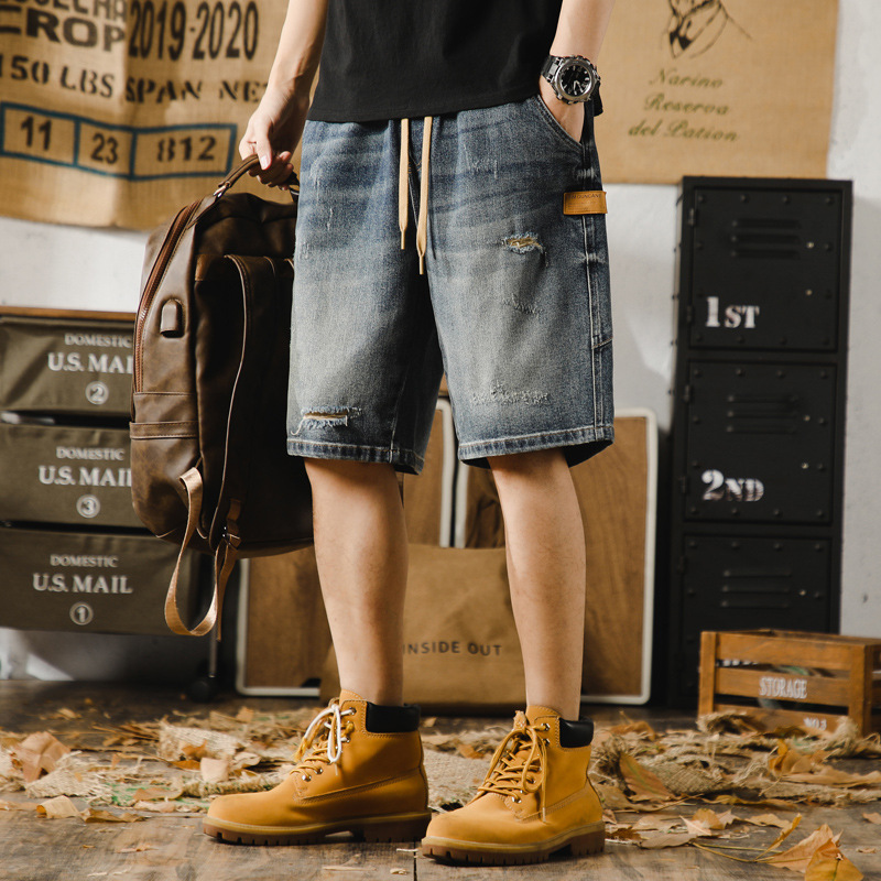 美式休闲复古乞丐破洞牛仔短裤男宽松大码痞帅五分裤夏季薄款中裤