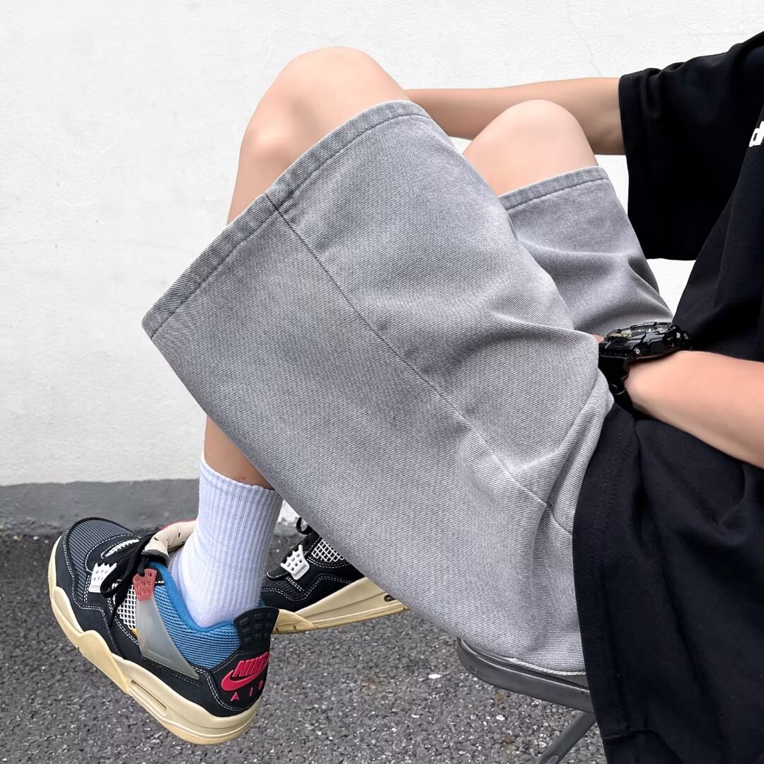 星空纹做旧牛仔短裤男夏季潮牌复古纯色宽松休闲水洗阔腿五分中裤