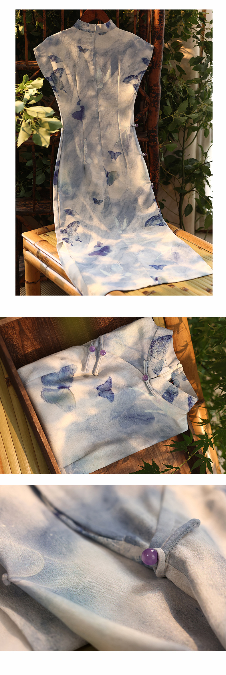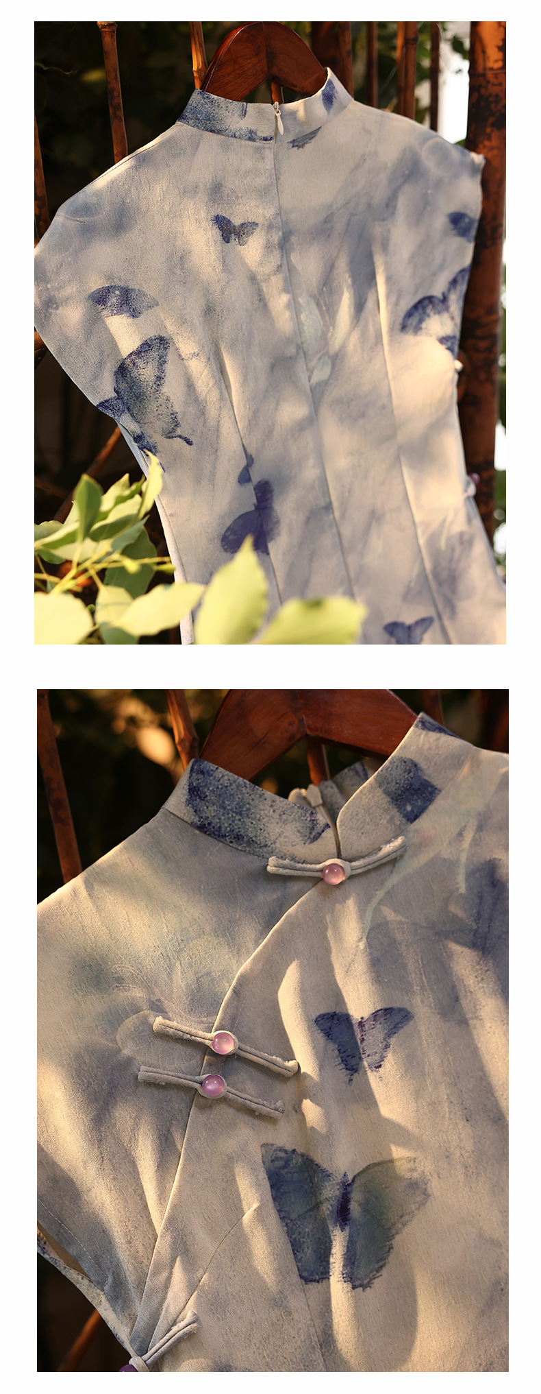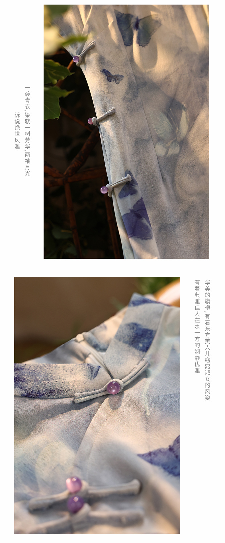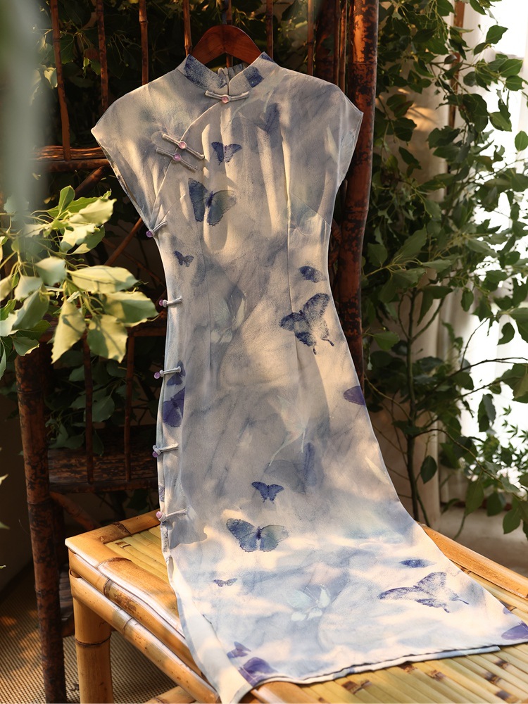 复古民国风蓝色短袖旗袍改良新中式年夏季新款日常可穿