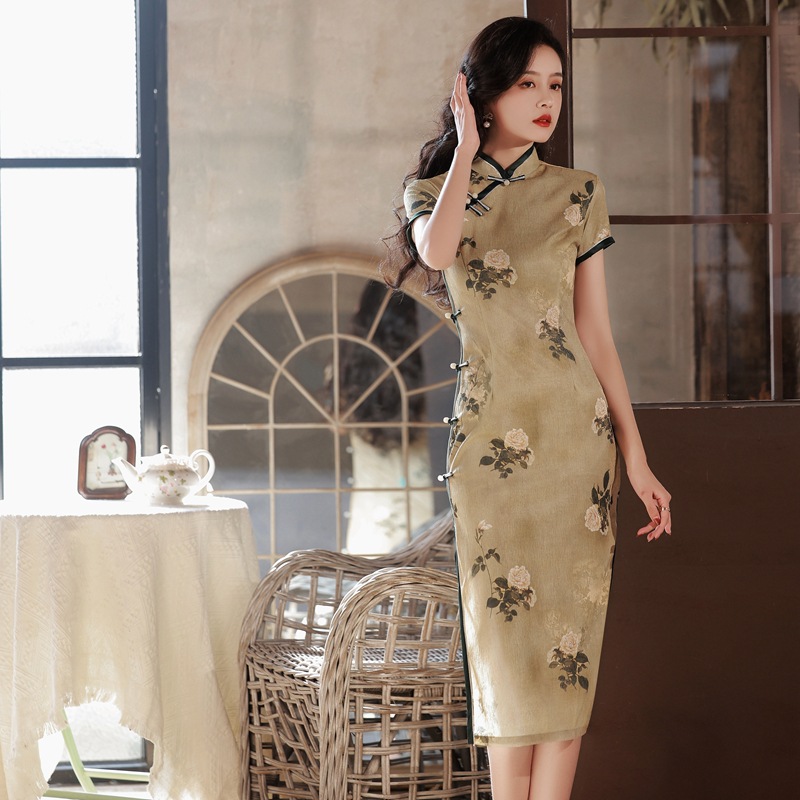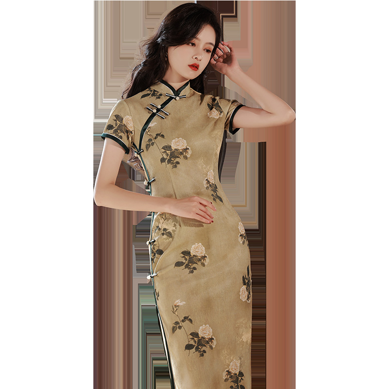 复古国潮风黄色针织提花旗袍年春季新款短袖改良年轻款