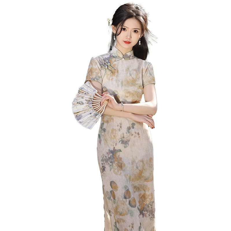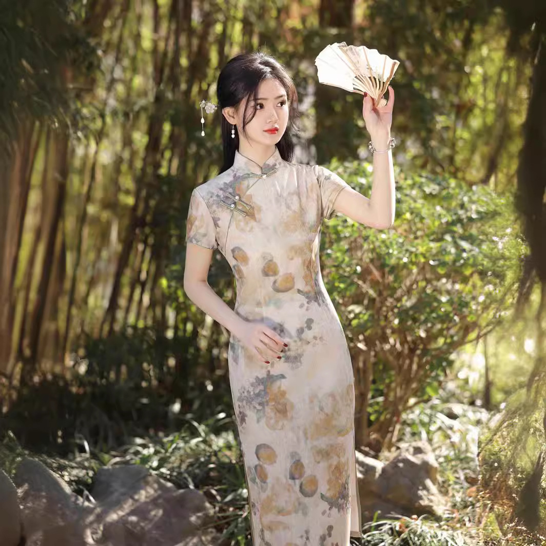 文艺复古印花旗袍春夏新款新中式国风年轻款少女高级感连衣裙