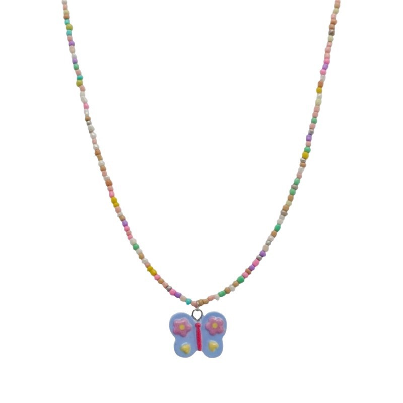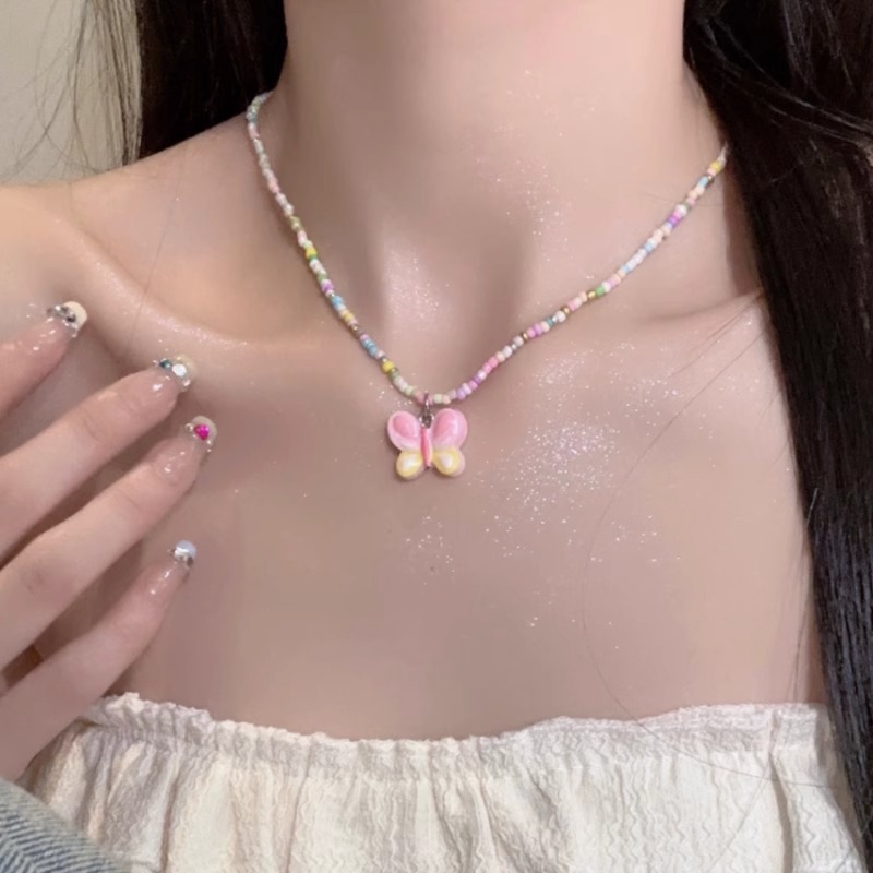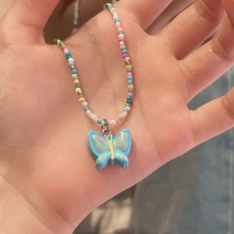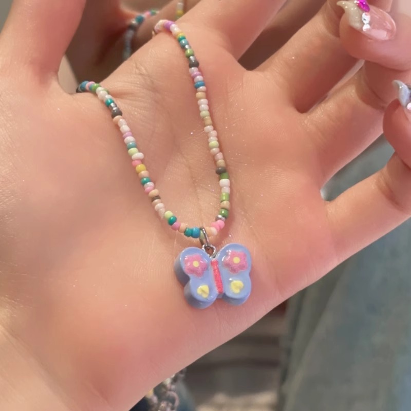 别样少女彩色蝴蝶串珠项链女甜美儿童夏日可爱卡通锁骨链潮