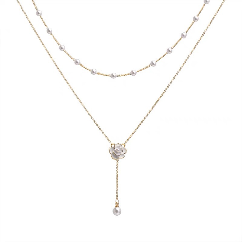 双层流苏珍珠项链女小众设计感山茶花锁骨链轻奢高级感气质脖颈链