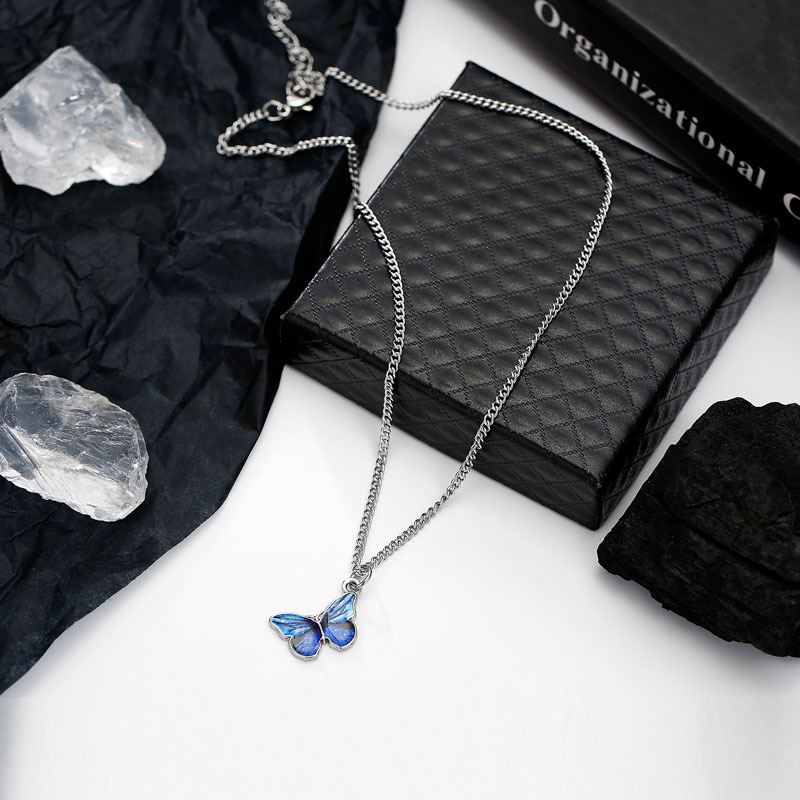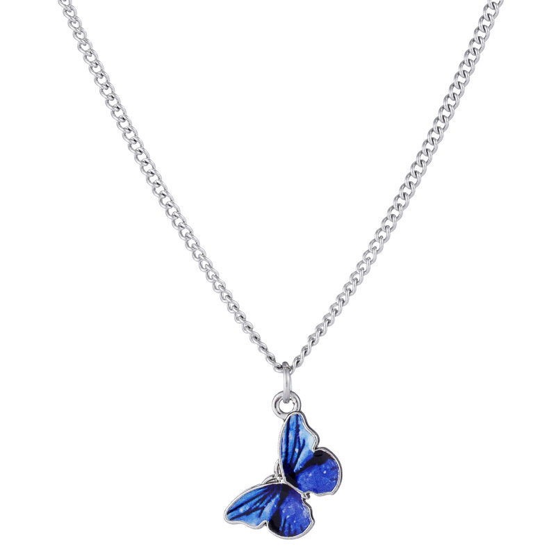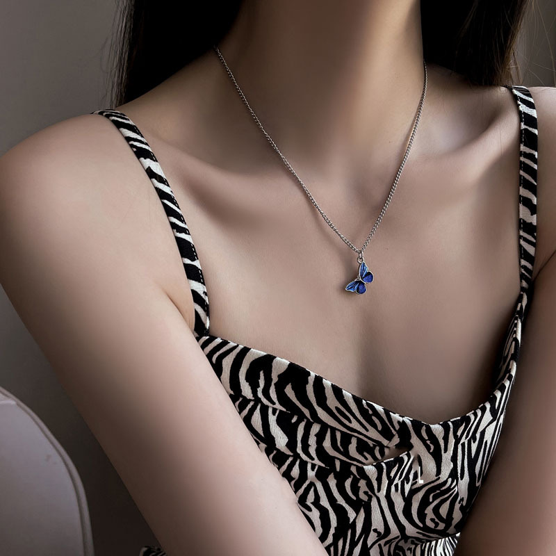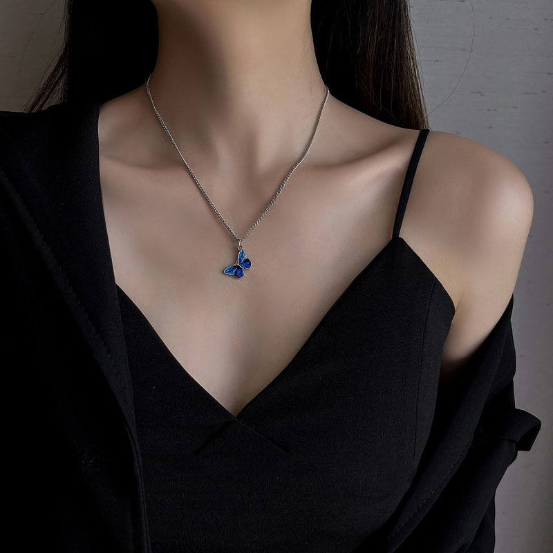 蓝色蝴蝶项链女仙气百搭吊坠简约锁骨链夏设计感小众ins冷淡风