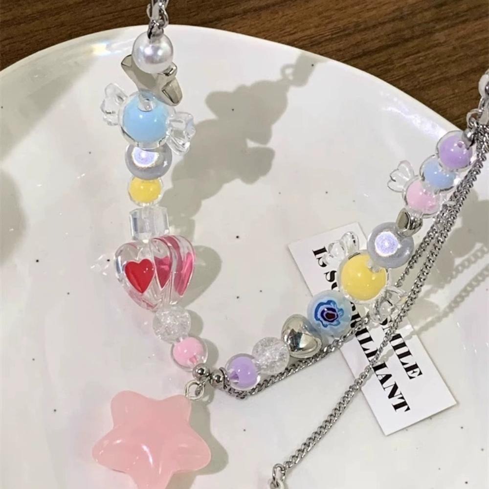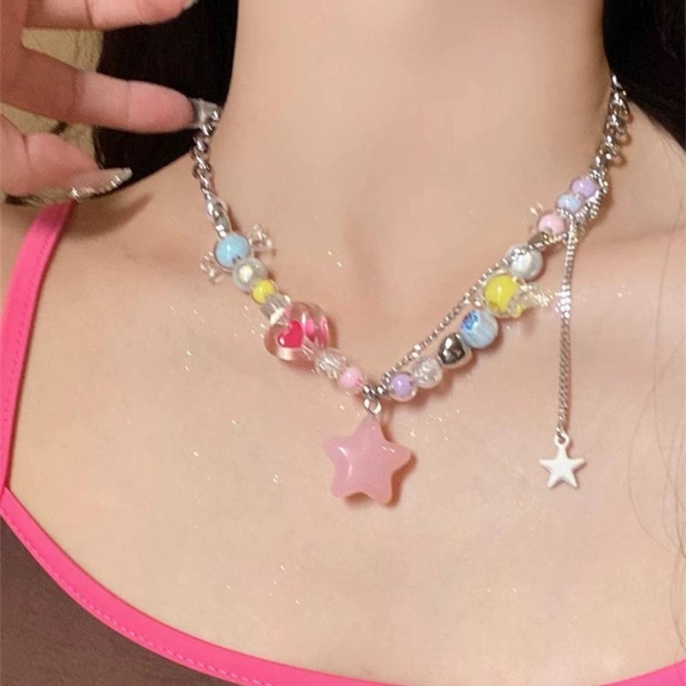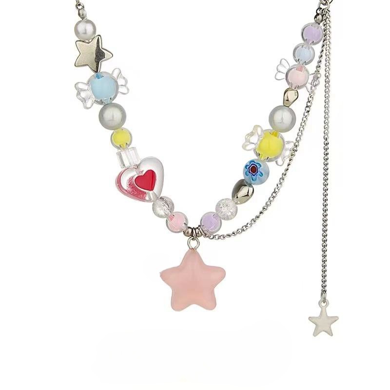 多巴胺彩色串珠星星流苏项链女年新款气质颈链甜酷辣妹锁骨链