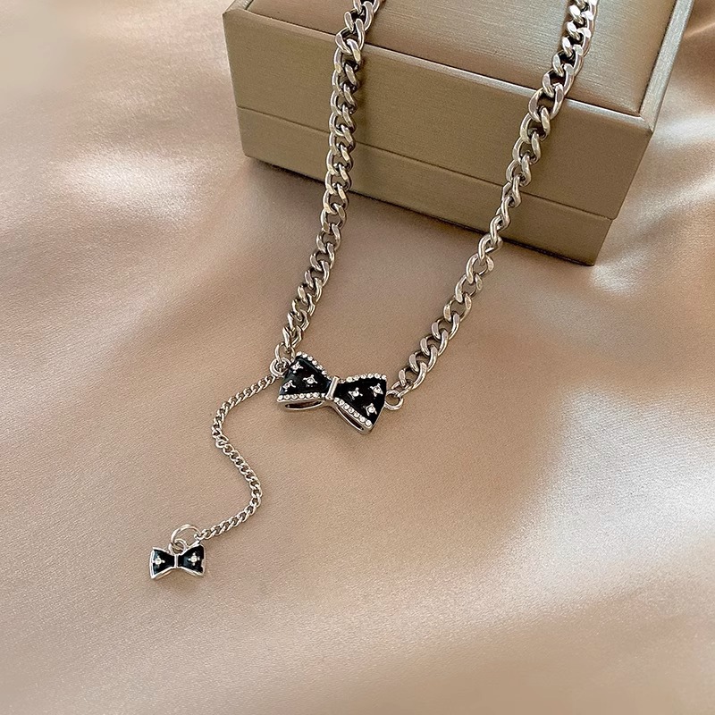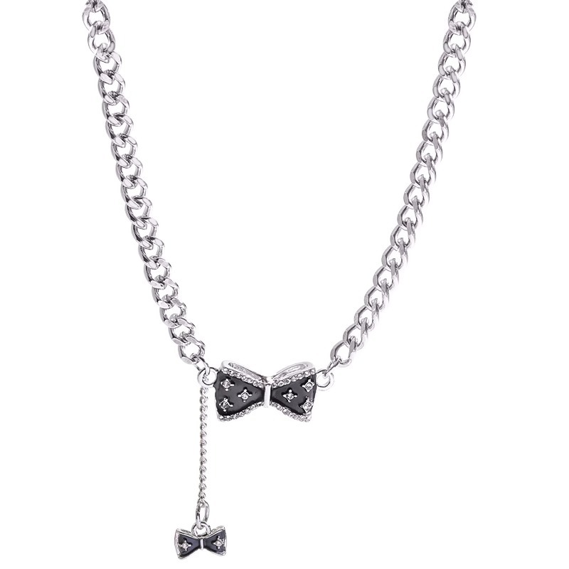 甜酷辣妹风黑色蝴蝶结项链女秋季气质网红锁骨链新款配饰