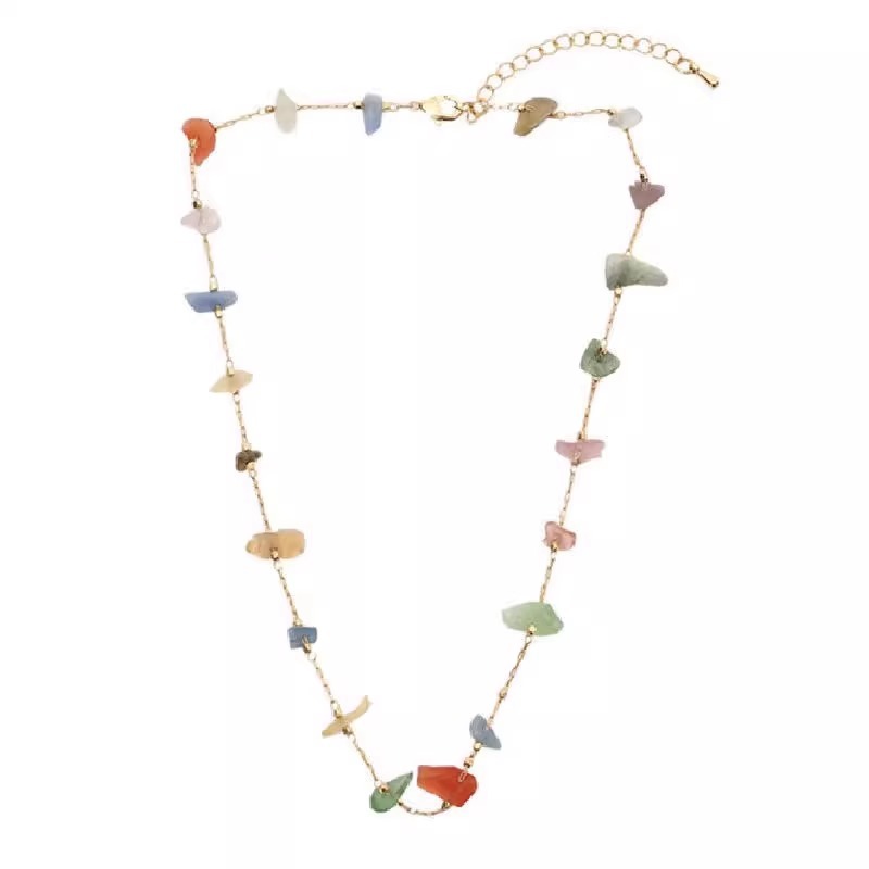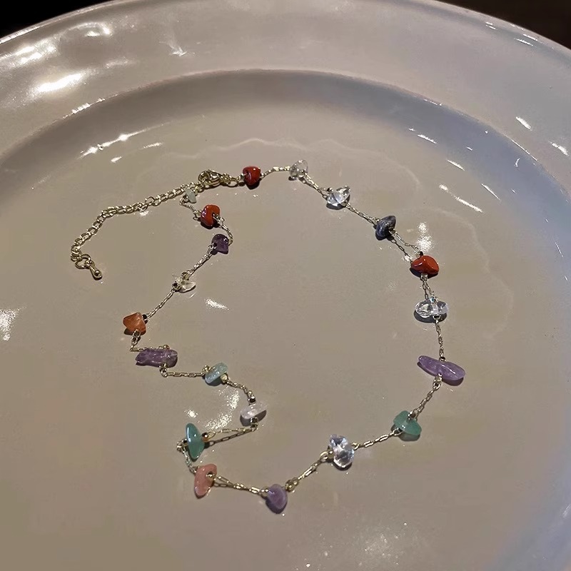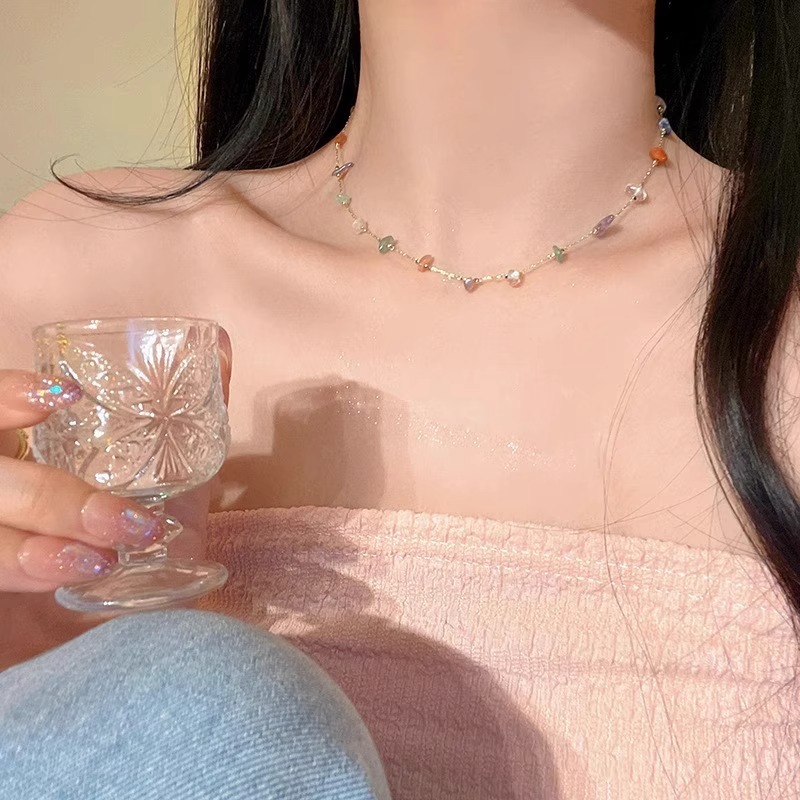 彩色原石项链女秋季巴胺锁新品简约气质百搭锁骨链网红颈链