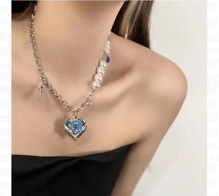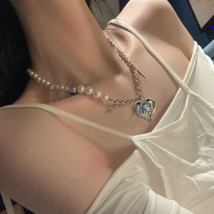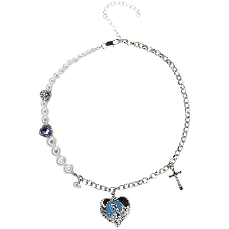 珍珠爱心十字架项链女夏小众钛钢配饰嘻哈甜酷风辣妹锁骨链潮