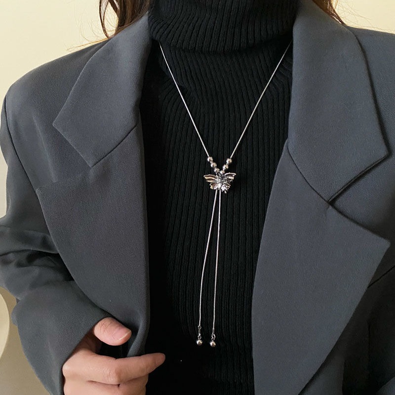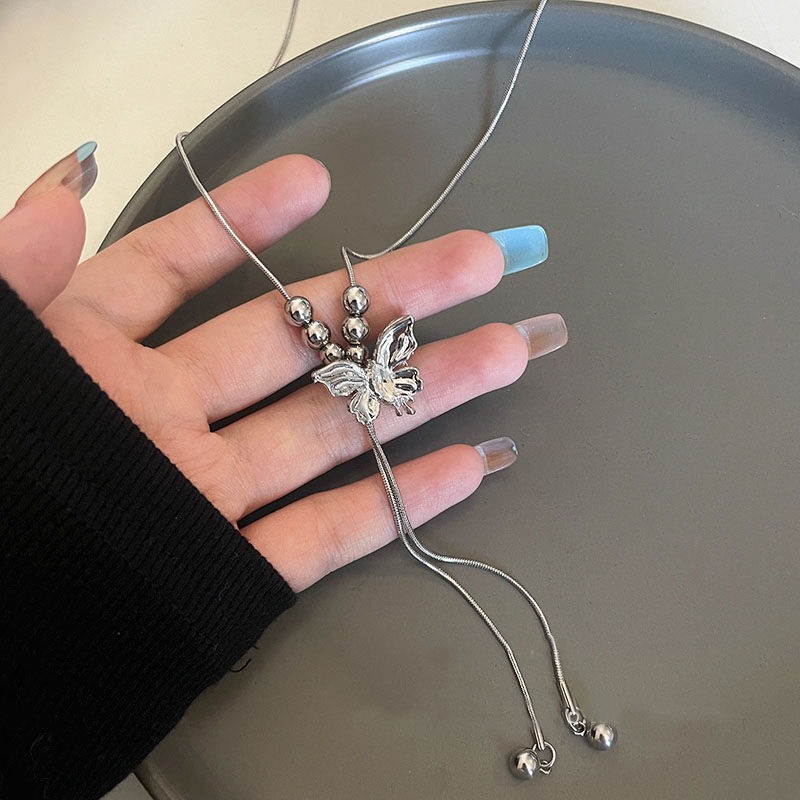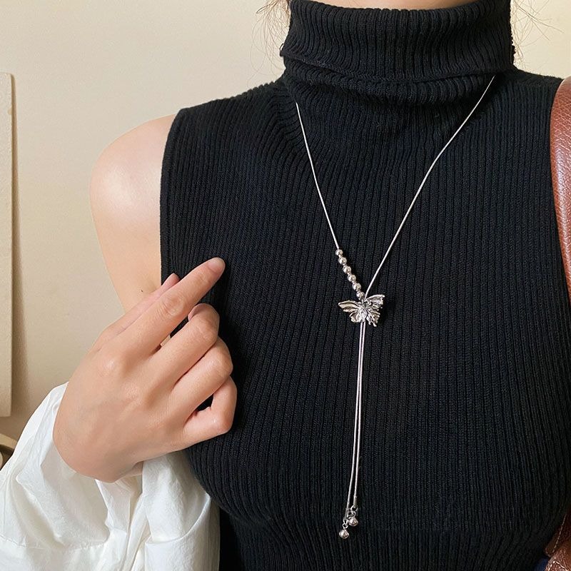 钢珠蝴蝶项链女法式轻奢小众设计感秋冬氛围毛衣链加长版