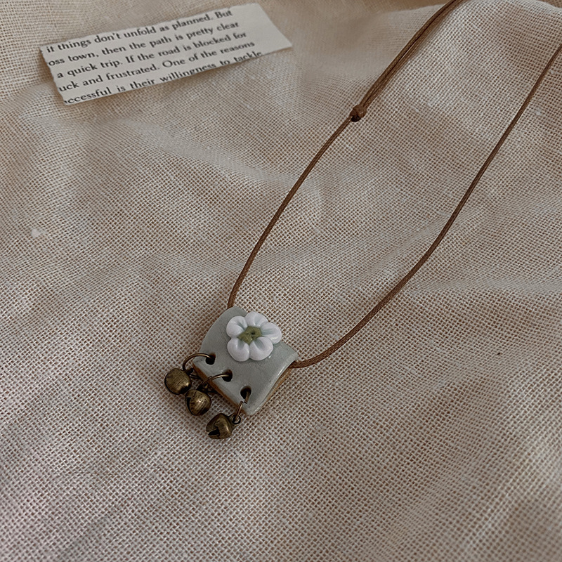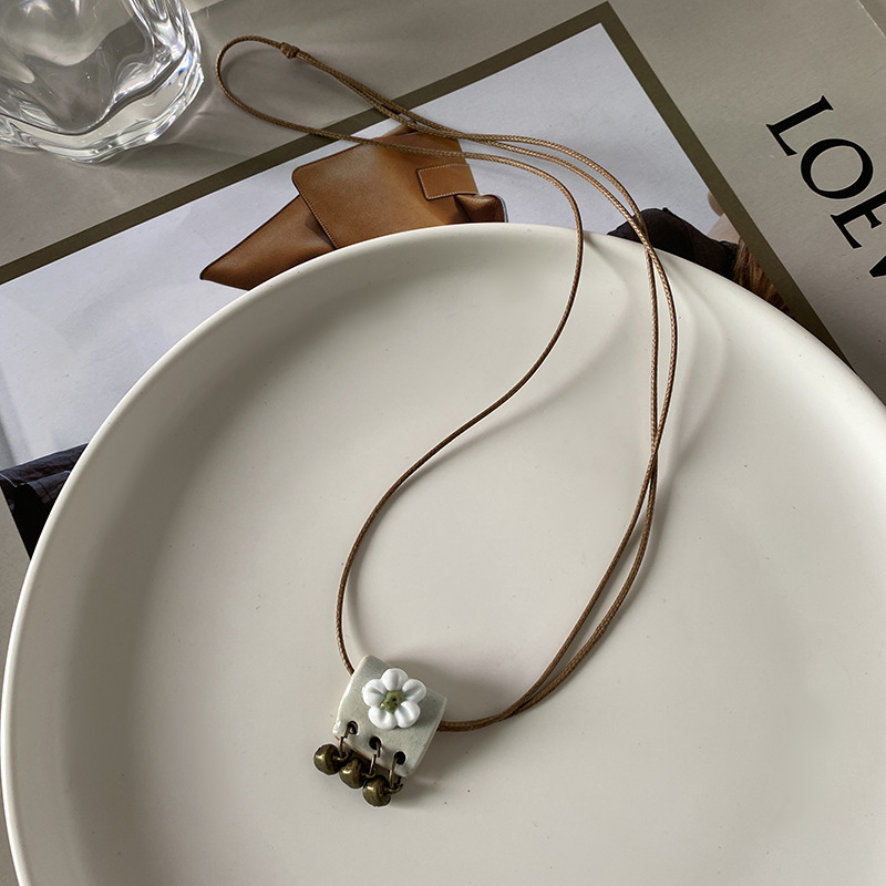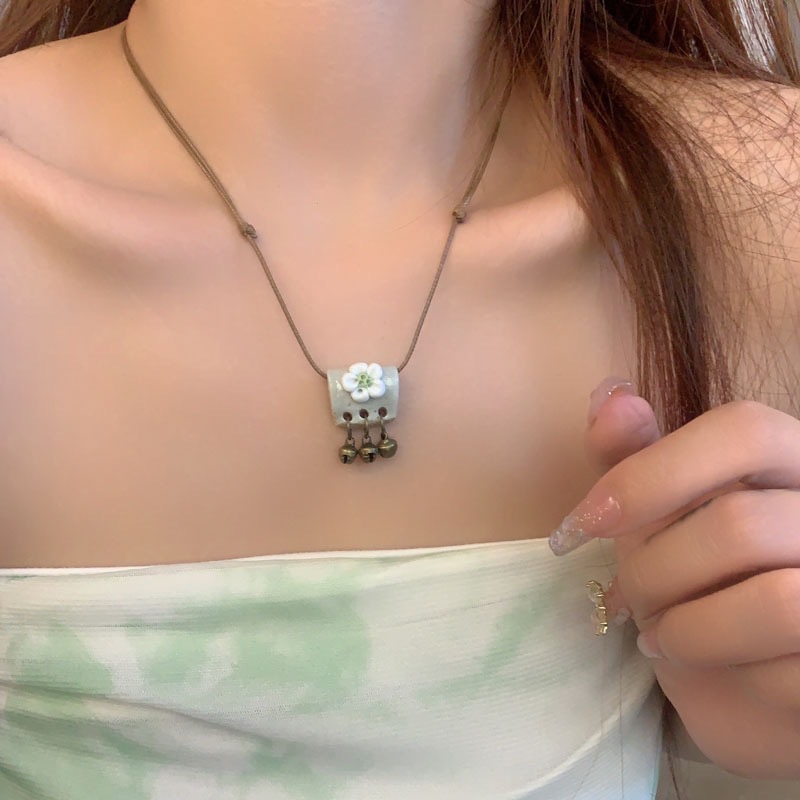 中式民族风陶瓷花朵项链女编织锁骨链高级小众设计感古风首饰饰品