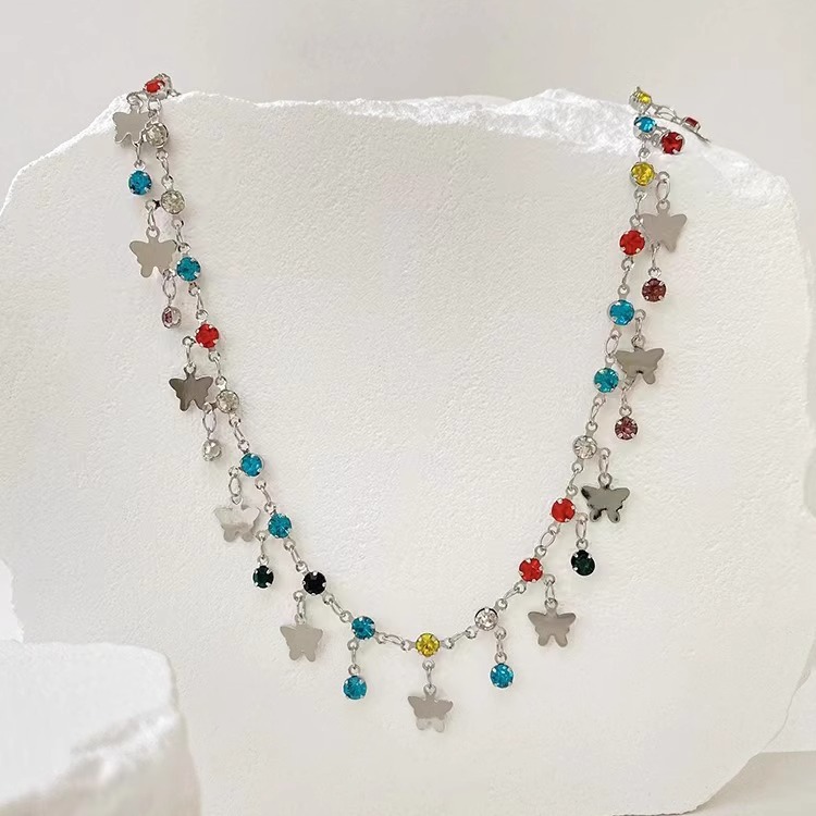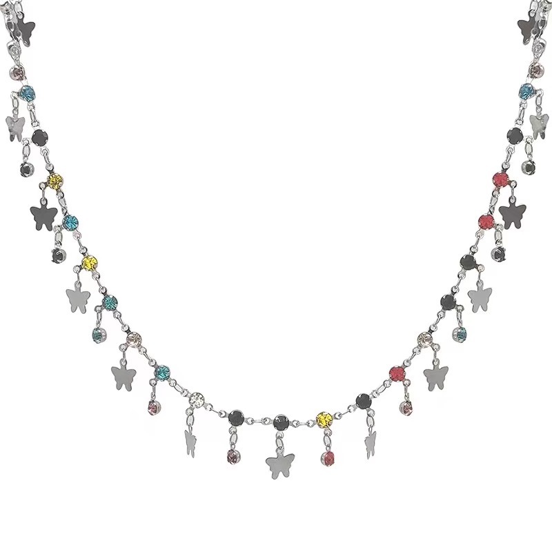 多巴胺彩色蝴蝶项链女夏日风情轻奢小众高级感百搭锁骨链饰
