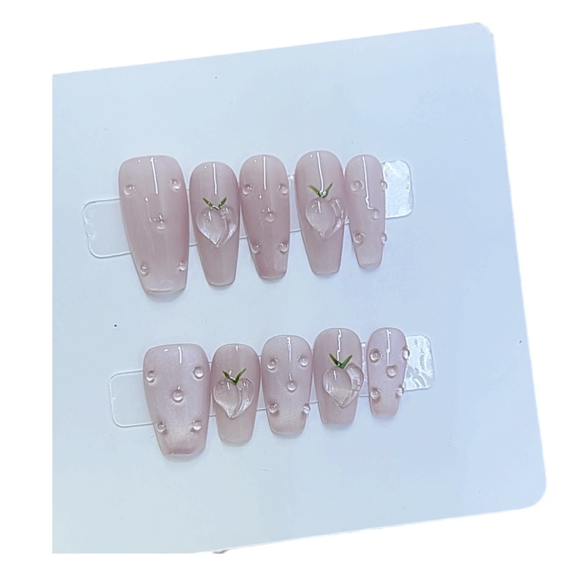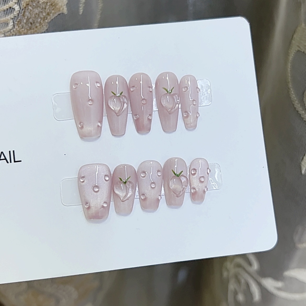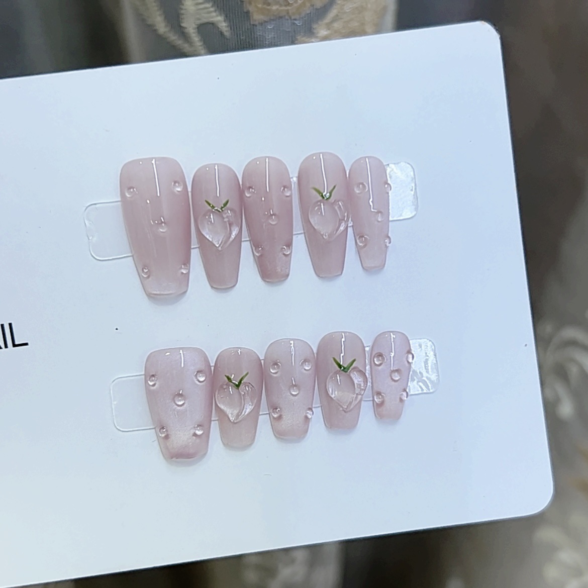 奈姿 纯手工光疗穿戴甲桃汁妖妖原批发成品重复使用美甲贴片可拆