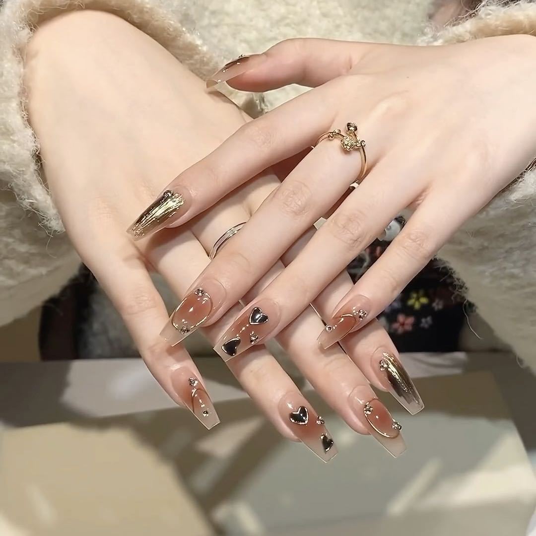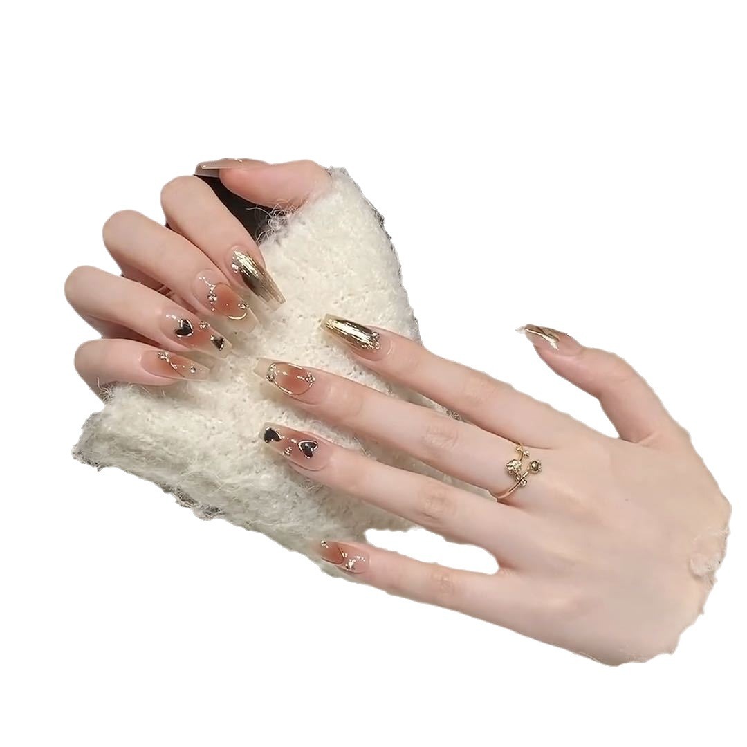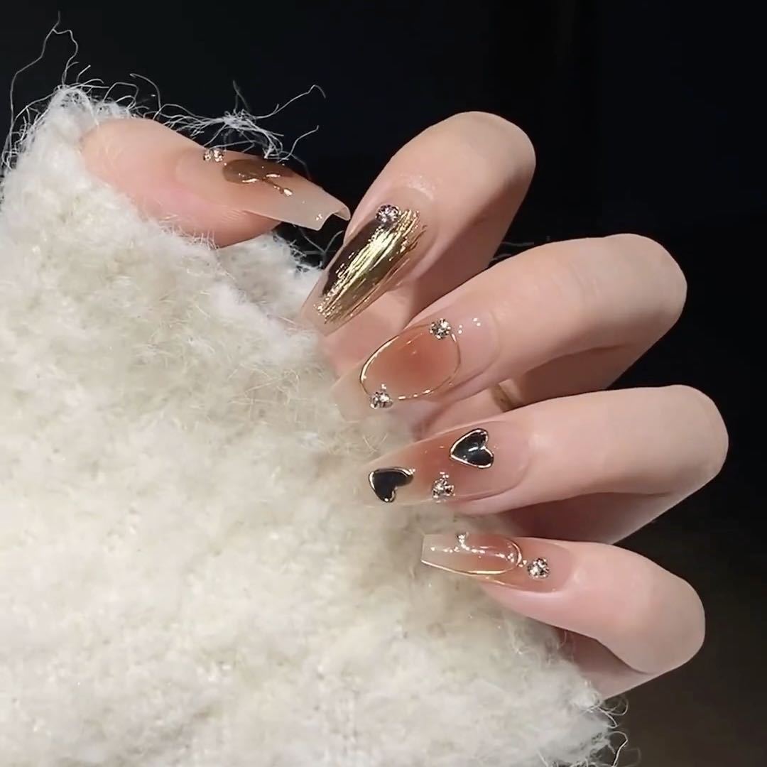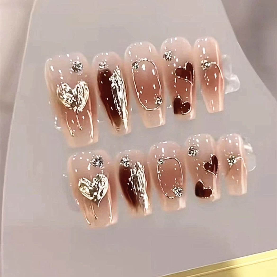 纯手工光疗美甲爱心美拉德穿戴甲批发成品重复使用美甲贴片可拆卸
