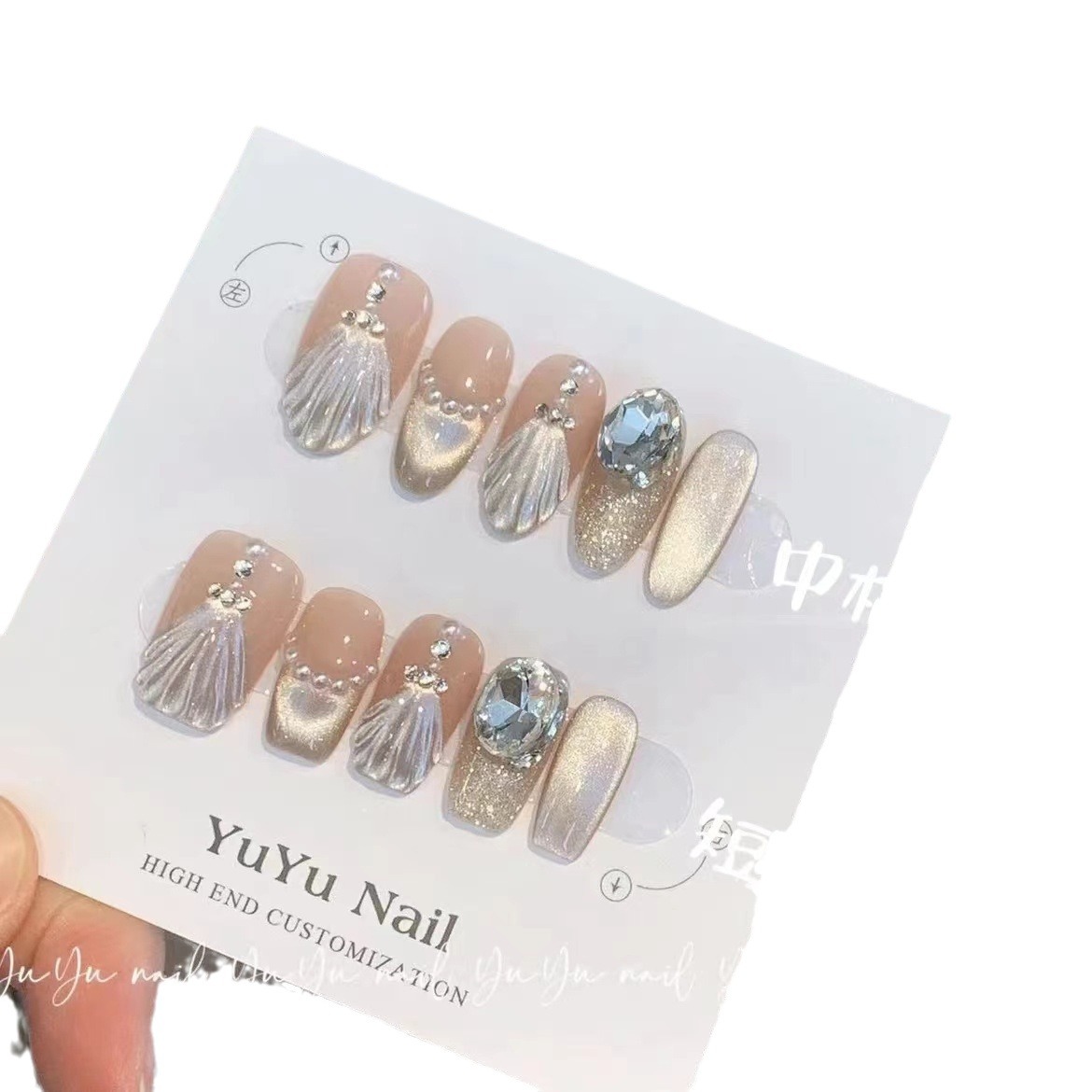 纯手工光疗穿戴甲橘裙摆穿戴甲批发成品重复使用美甲贴片可拆卸