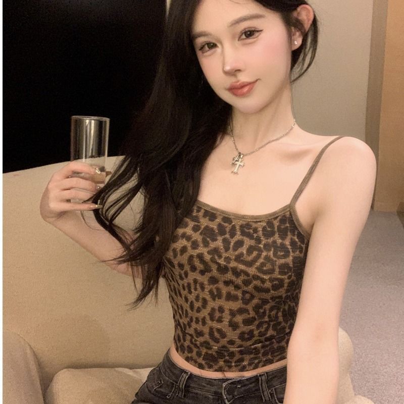 修身豹纹外穿辣妹性感吊带背心女夏季内搭打底紧身显瘦短款上衣女
