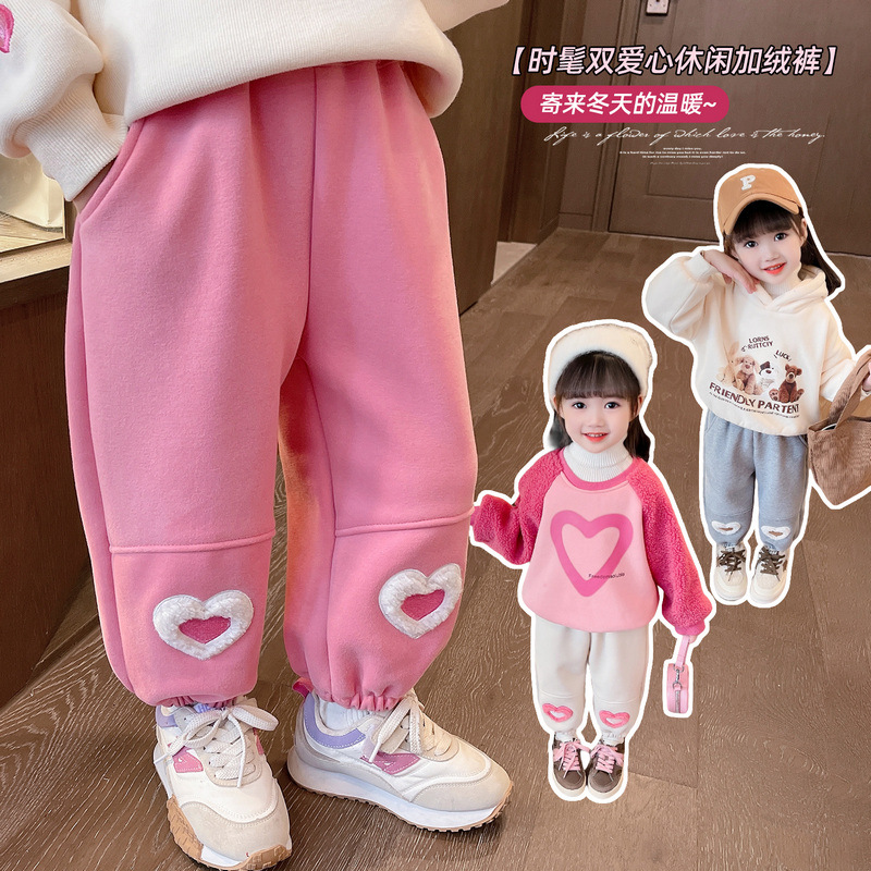 女童加绒裤子一体绒秋冬款儿童加厚休闲裤女孩束脚运动裤宝宝冬装