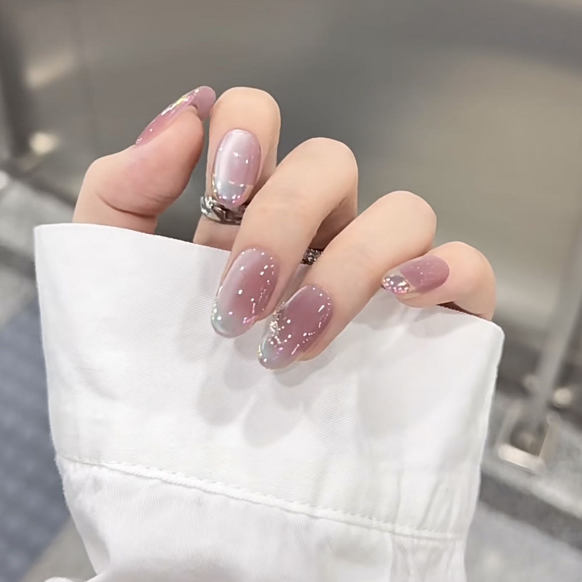 奈姿 纯手工光疗穿戴甲梦幻极光原批发成品重复使用美甲贴片可拆