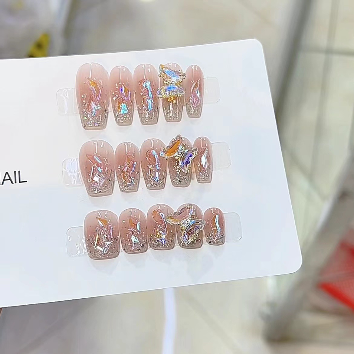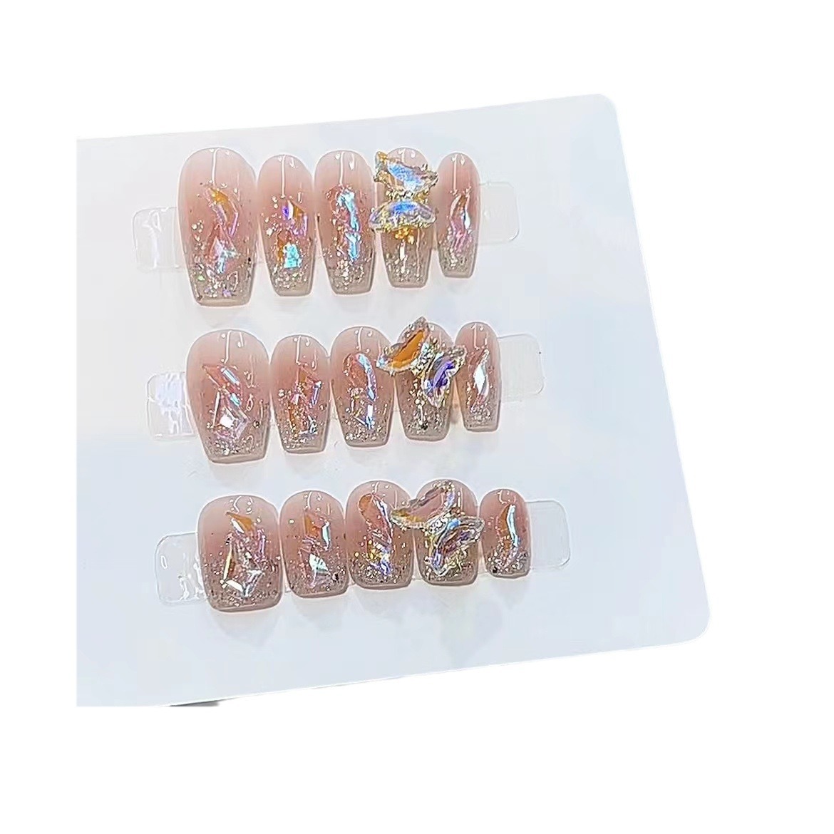 奶白色仙女美甲爆闪满钻香槟闪粉钻款穿戴甲美甲批发成品