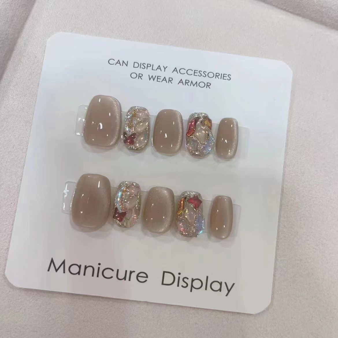 一只顾美甲厂 【Y】【原创实拍】温柔裸色嫩粉色法式丝绸钻温柔奶