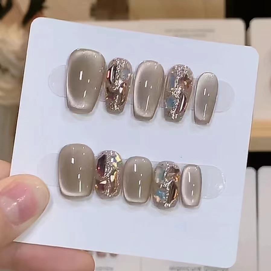 纯手工光疗穿戴甲薄荷糖批发成品重复使用美甲贴片可拆卸猫