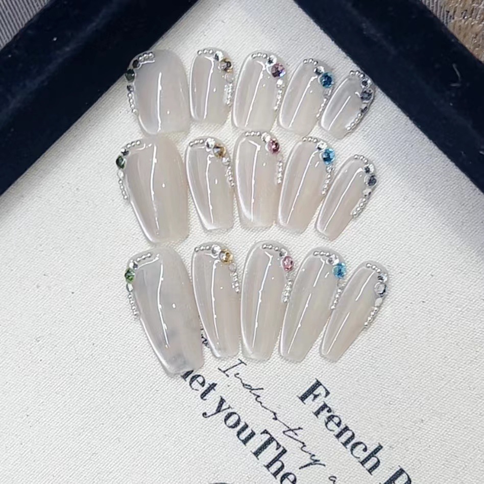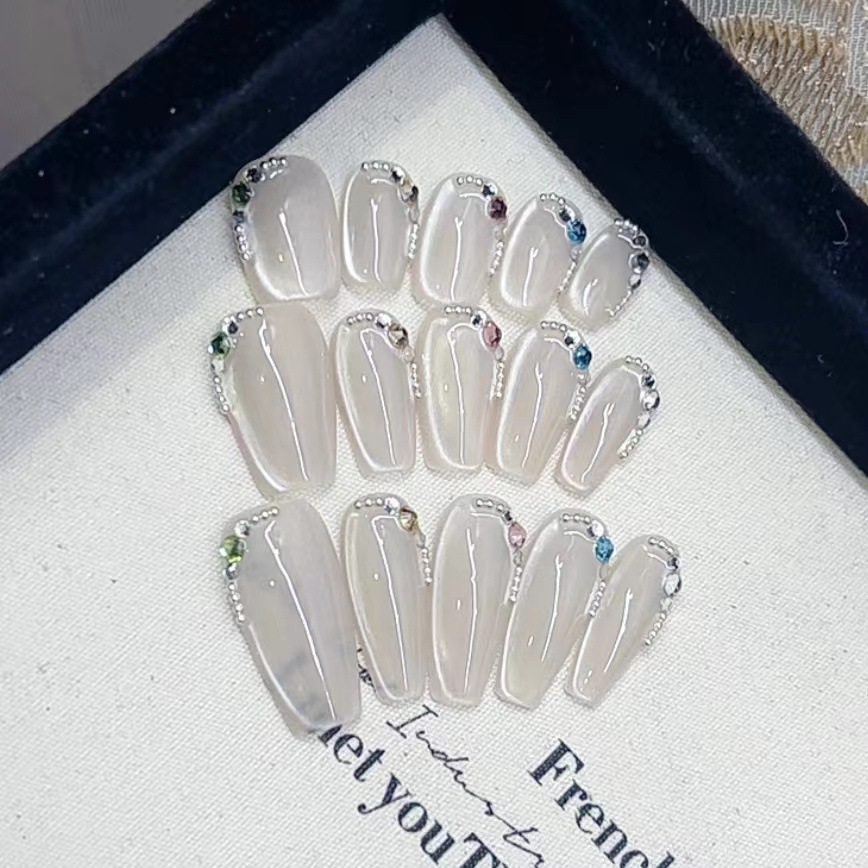 纯手工光疗穿戴甲白月光猫眼原批发成品重复使用美甲贴片可拆卸猫