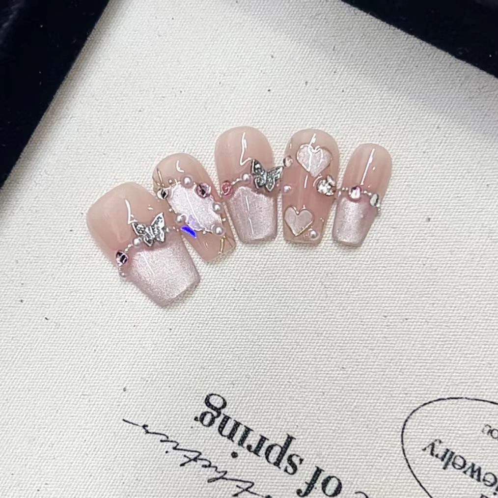 纯手工光疗穿戴甲梦话少女原批发成品重复使用美甲贴片可拆卸猫