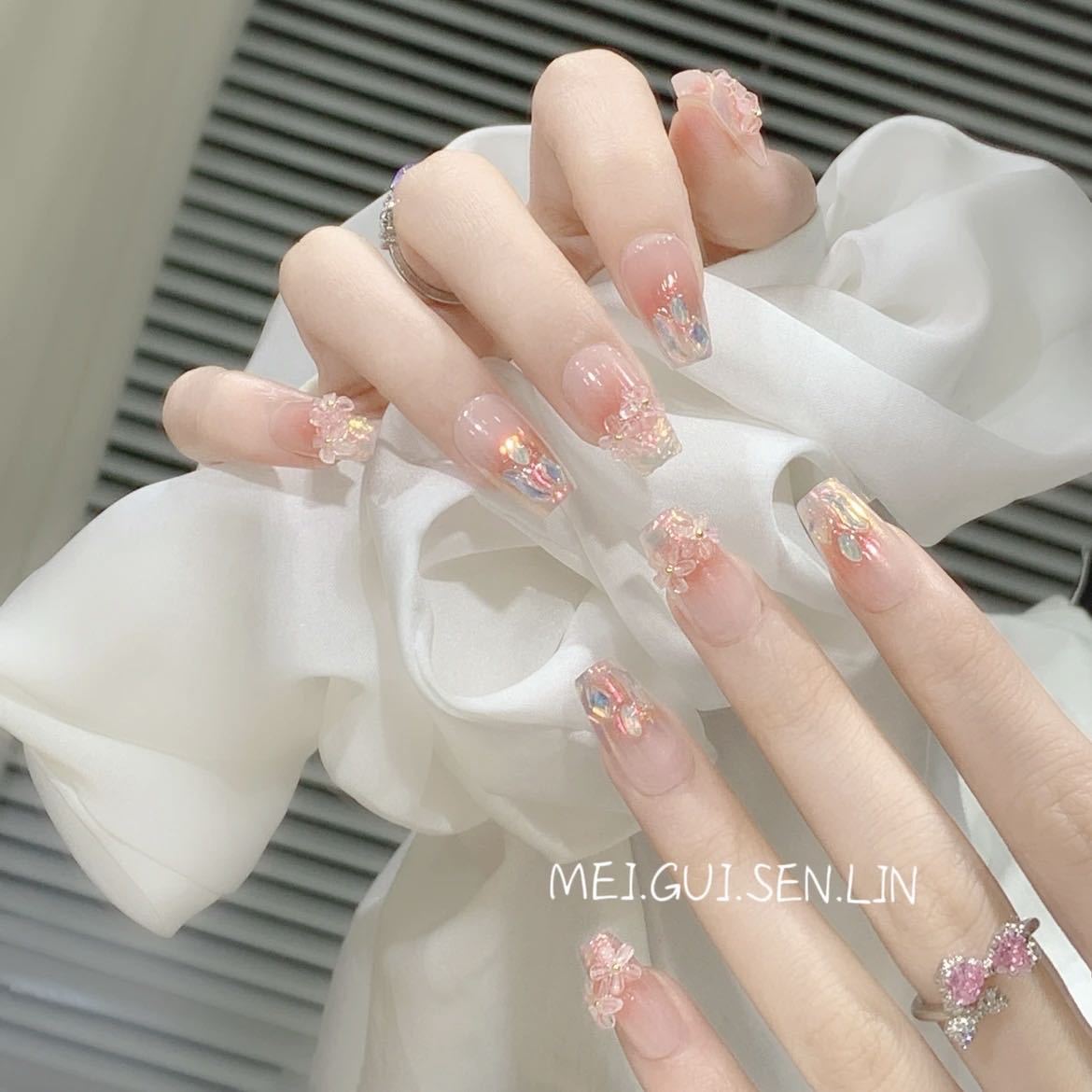 纯手工光疗穿戴甲油画木槿批发成品重复使用美甲贴片可拆卸