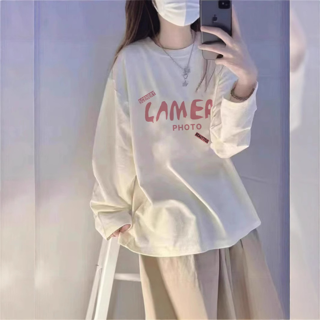 白色纯棉长袖t恤女大码宽松春秋上衣休闲显瘦内搭打底衫新款