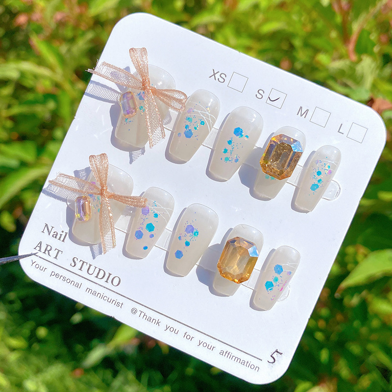 纯手工光疗穿戴甲片粉猫眼穿戴甲批发成品重复使用美甲贴片