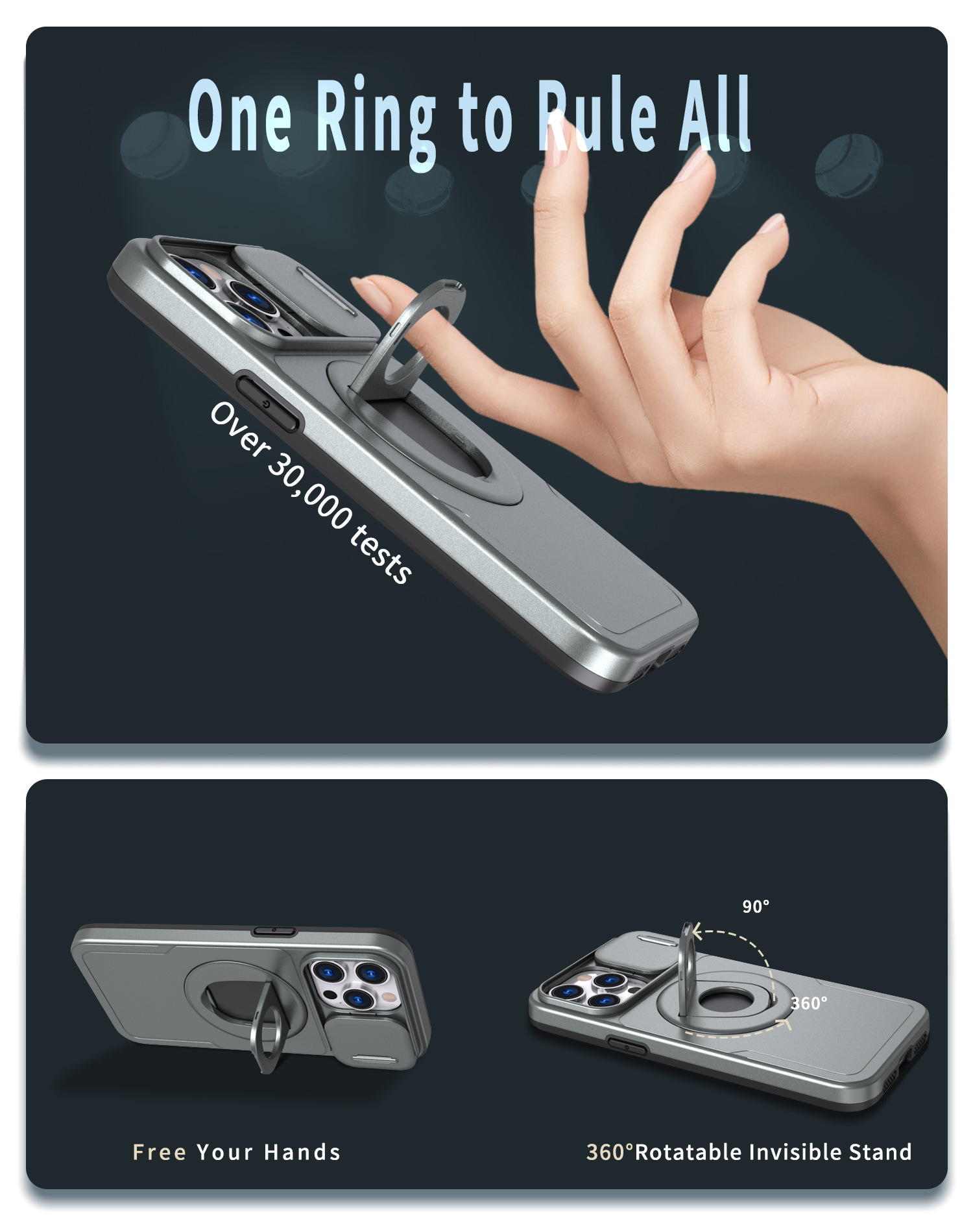 超凡隐甲二代适用iPhone15ProMax手机壳指环旋转支架镜头推窗磁吸