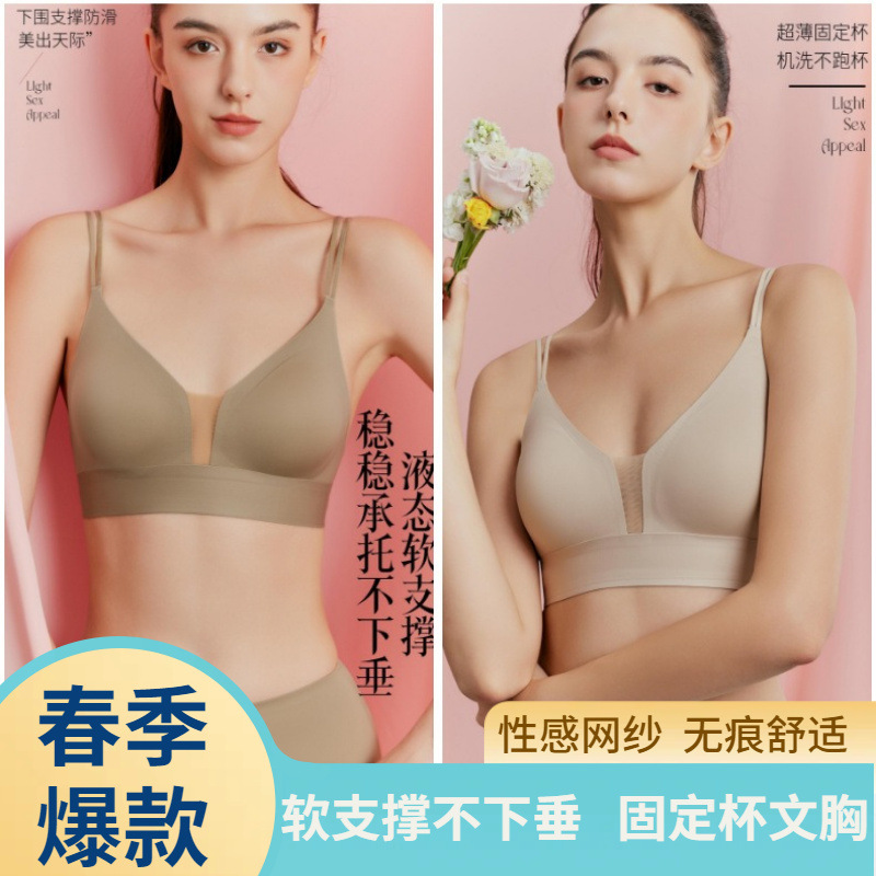 新款法式网纱美背内衣女士无痕文胸无钢圈调整型小胸聚拢胸罩3362