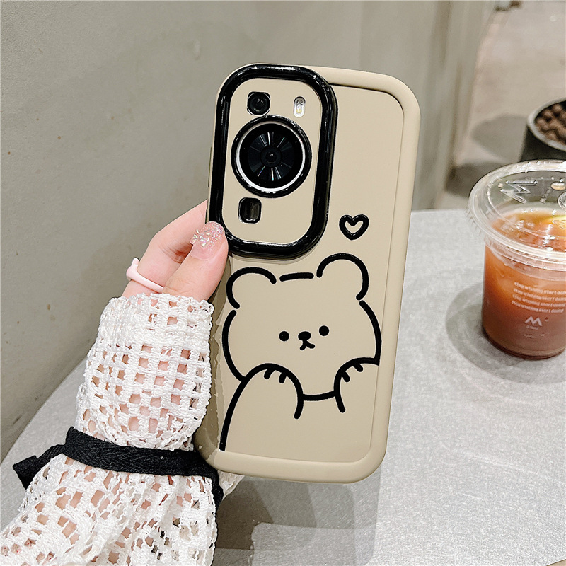 线条爱心小熊适用于华为Mate30Pro手机壳P30简约P40硅胶保护套女