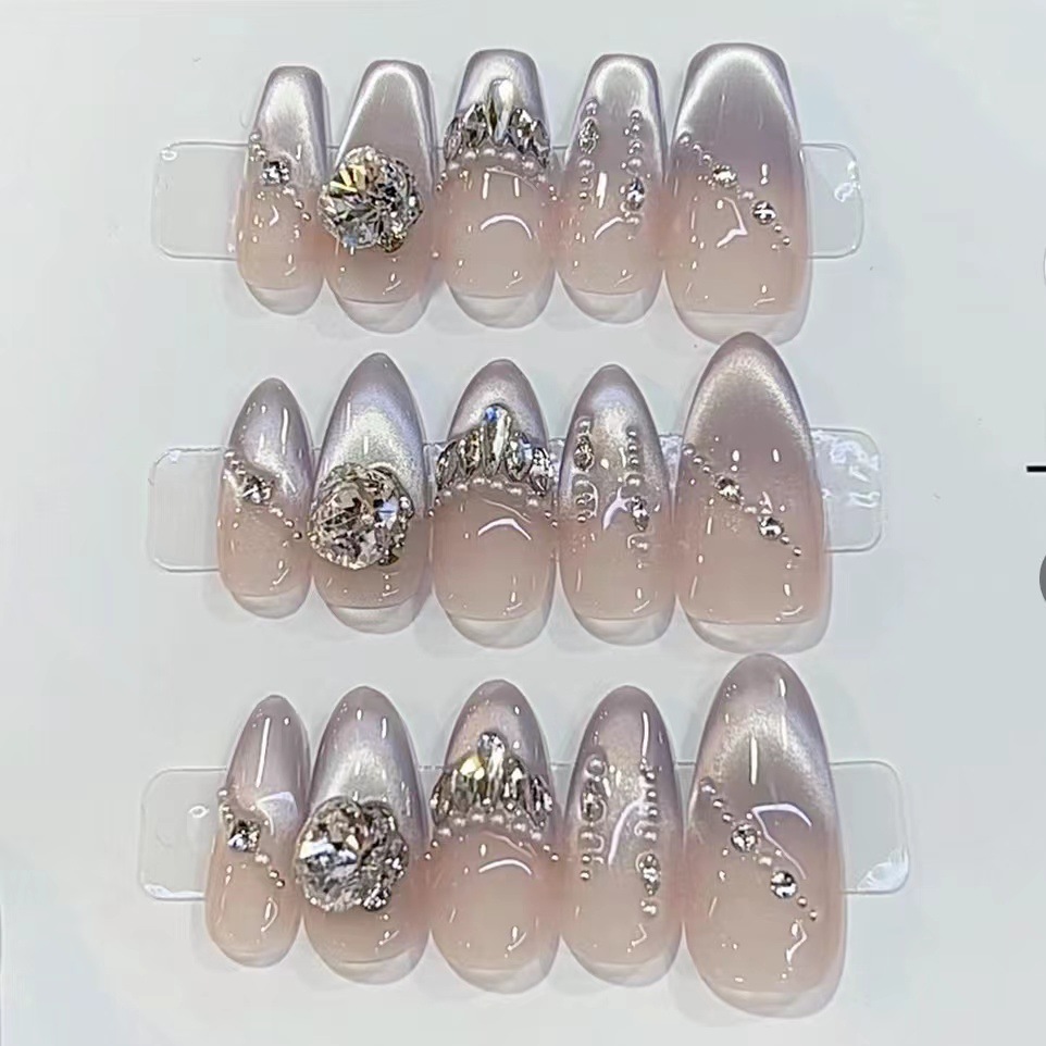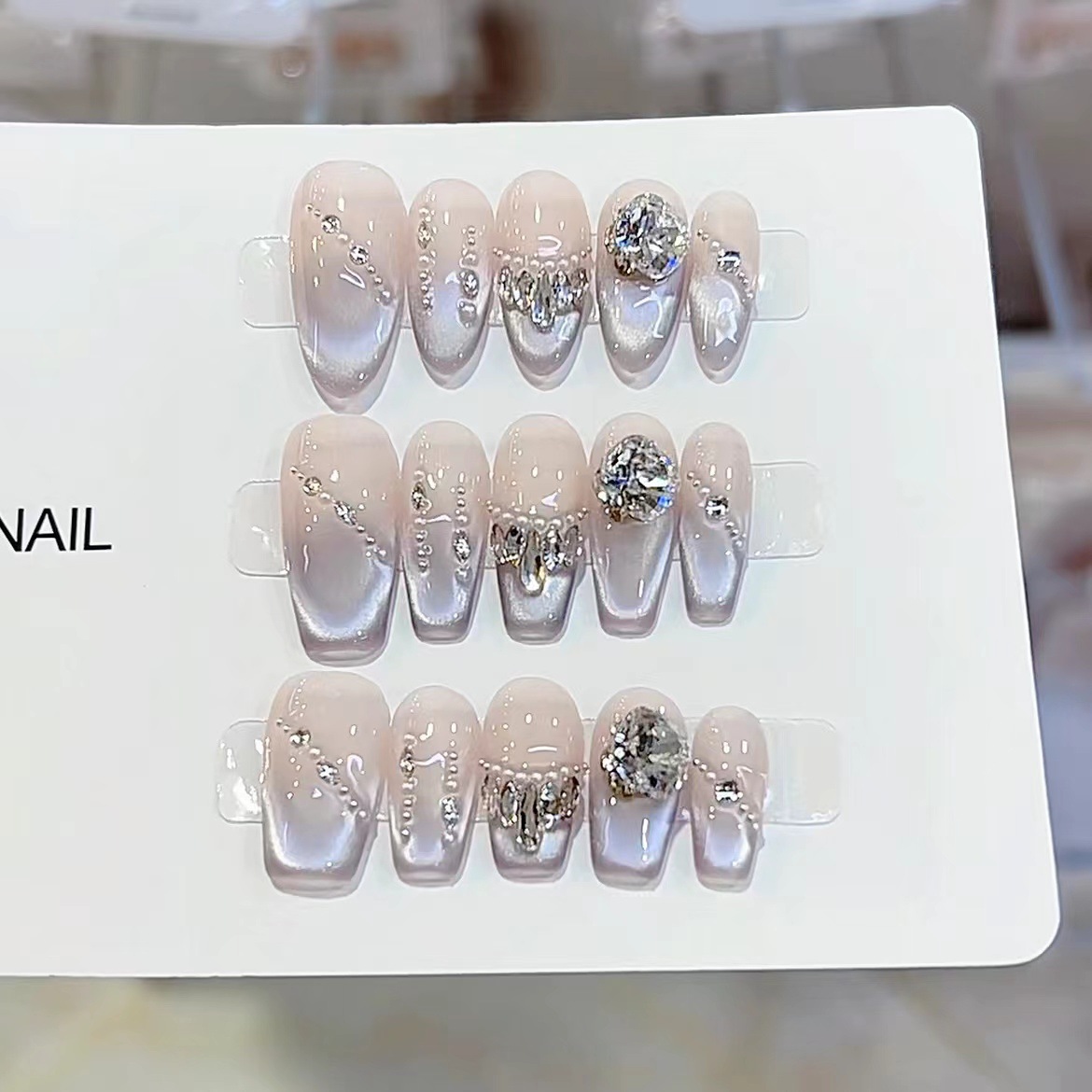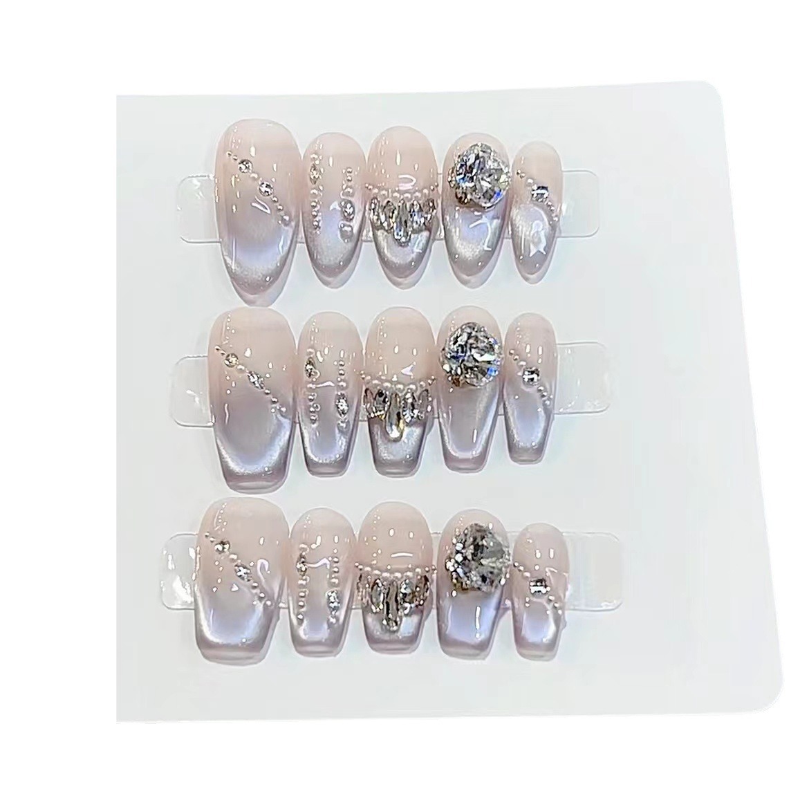 奈姿 纯手工光疗穿戴灰蓝碎钻 原批发成品重复使用贴片可拆