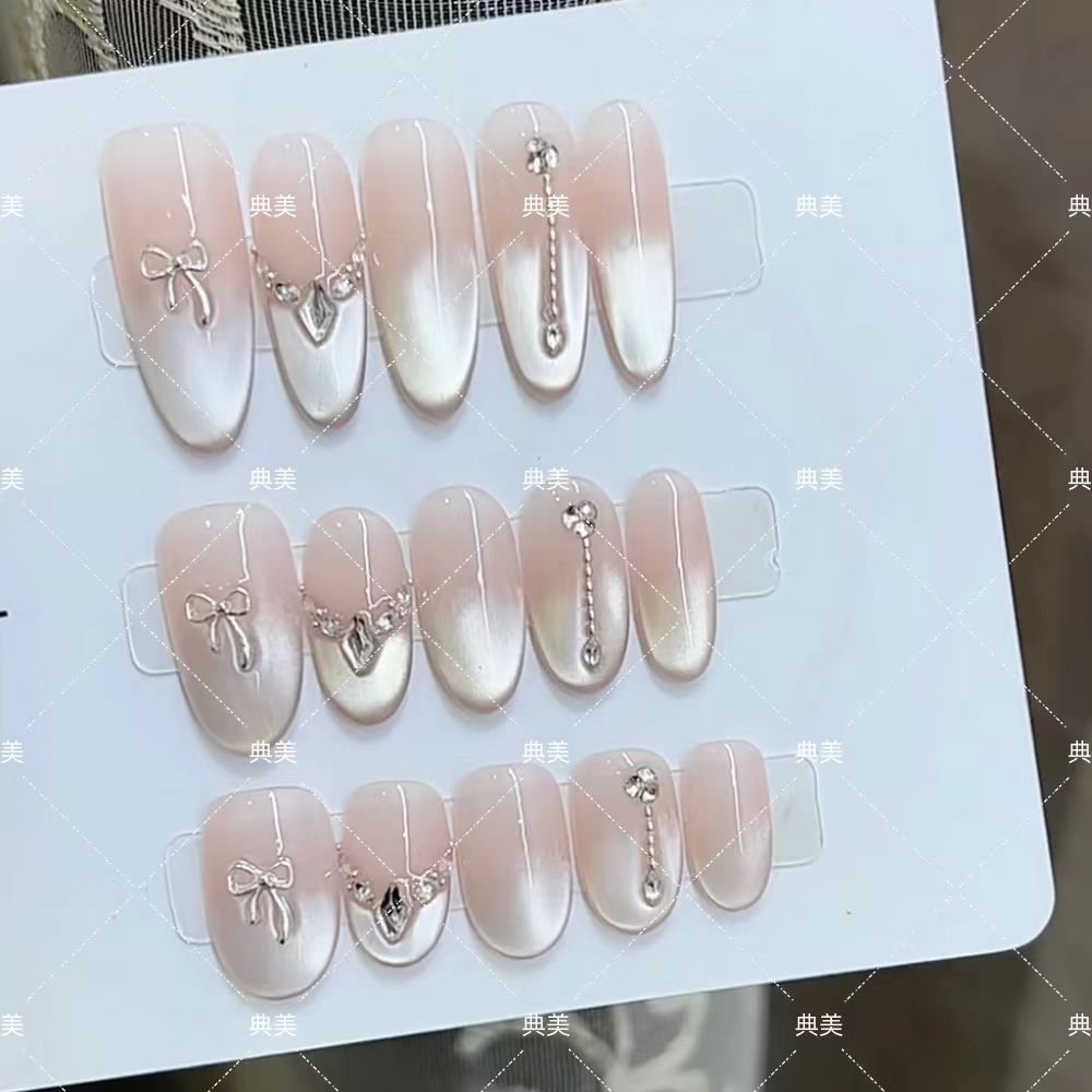 奈姿 纯手工光疗穿戴甲月光闪烁批发成品重复使用美甲贴片可拆