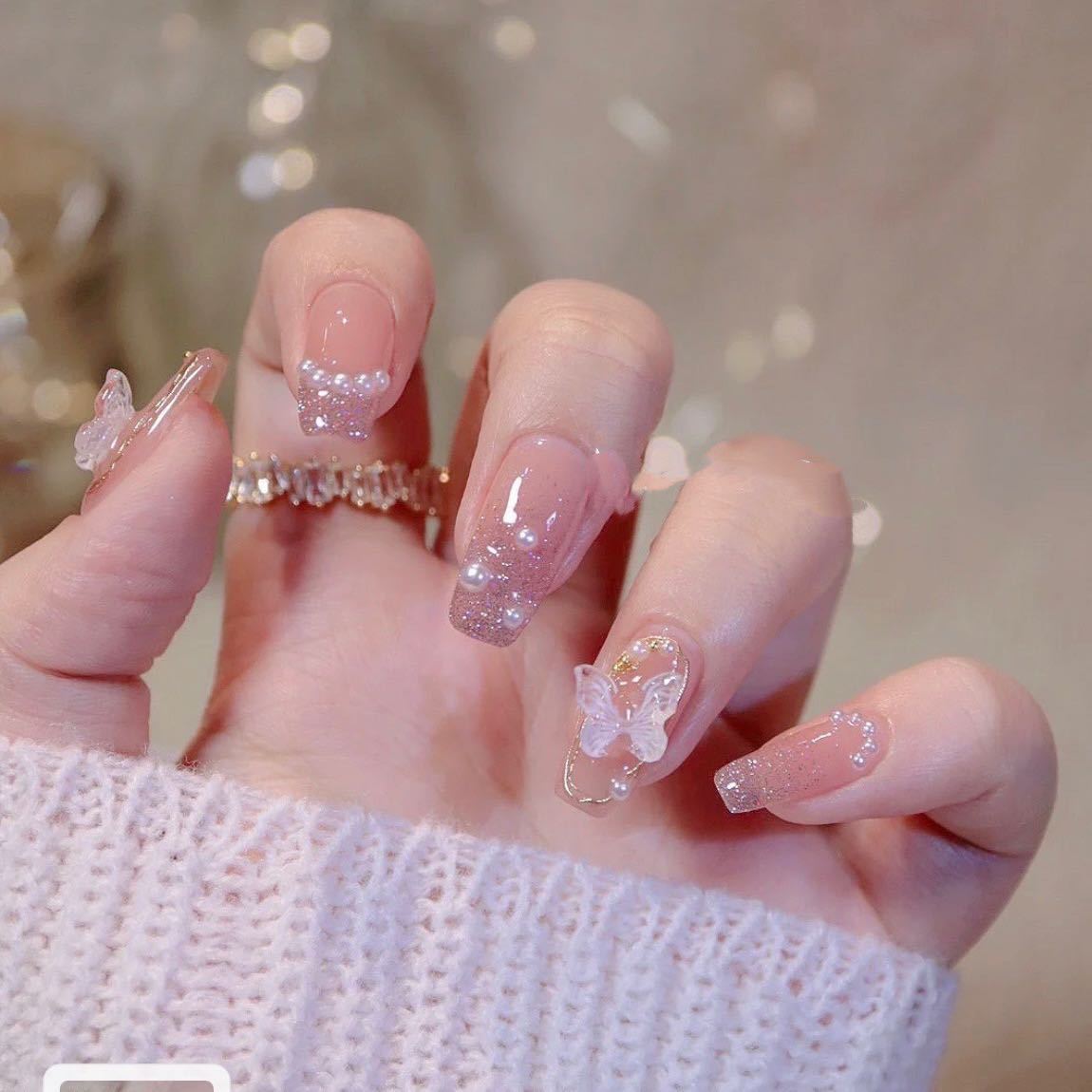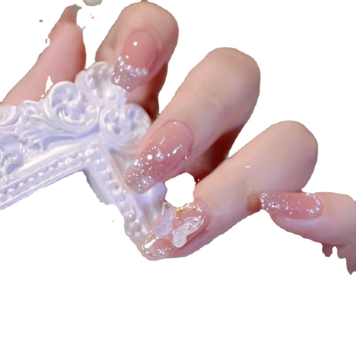 纯手工光疗穿戴甲裸透蝴蝶穿戴甲批发成品重复使用美甲贴片可拆卸