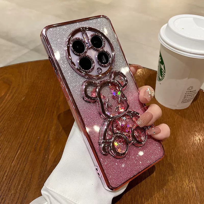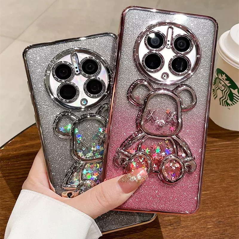 流沙电镀暴力熊适用华为Mate50手机壳闪粉渐变Mate40全包P60软壳