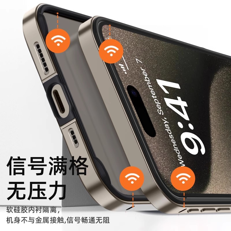 直边四角防摔适用iPhone15铝合金边框手机壳苹果14防摔金属保护套