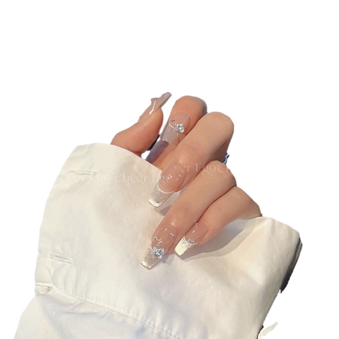 一只顾美甲 冰透冰川蓝微笑猫眼马眼银碎细闪蓝丝带贴片穿戴甲