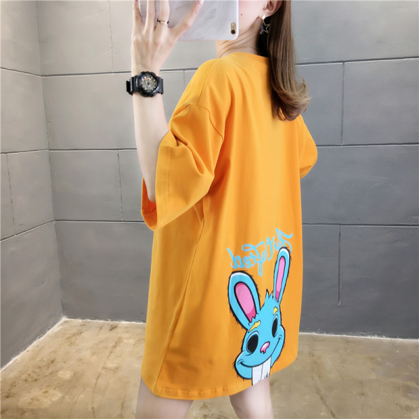 夏装新款原宿风中长款宽松棉短袖t恤女ins潮网红上衣百搭体恤衫