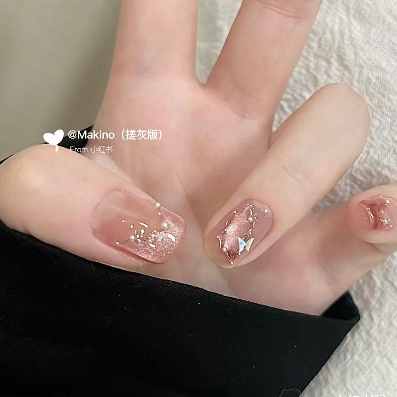纯手工光疗穿戴甲蝴蝶效应批发成品重复使用美甲贴片可拆卸