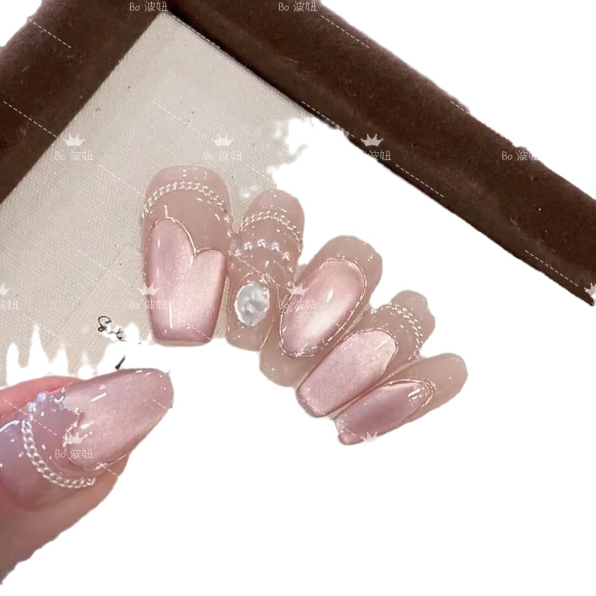 纯手工光疗穿戴甲片初雪穿戴甲批发成品重复可拆卸使用美甲贴片