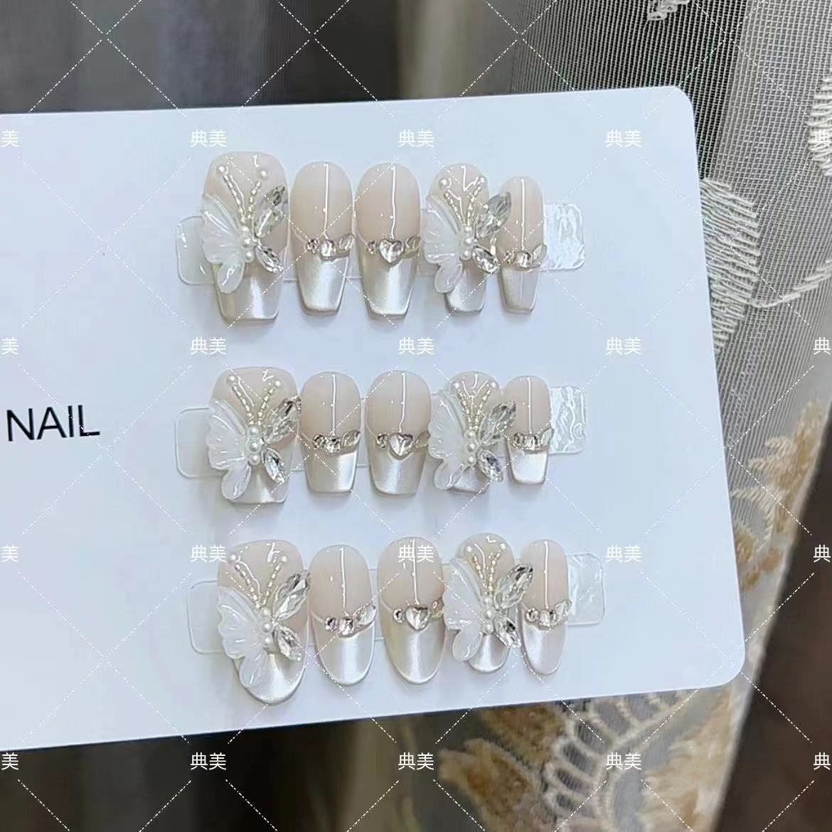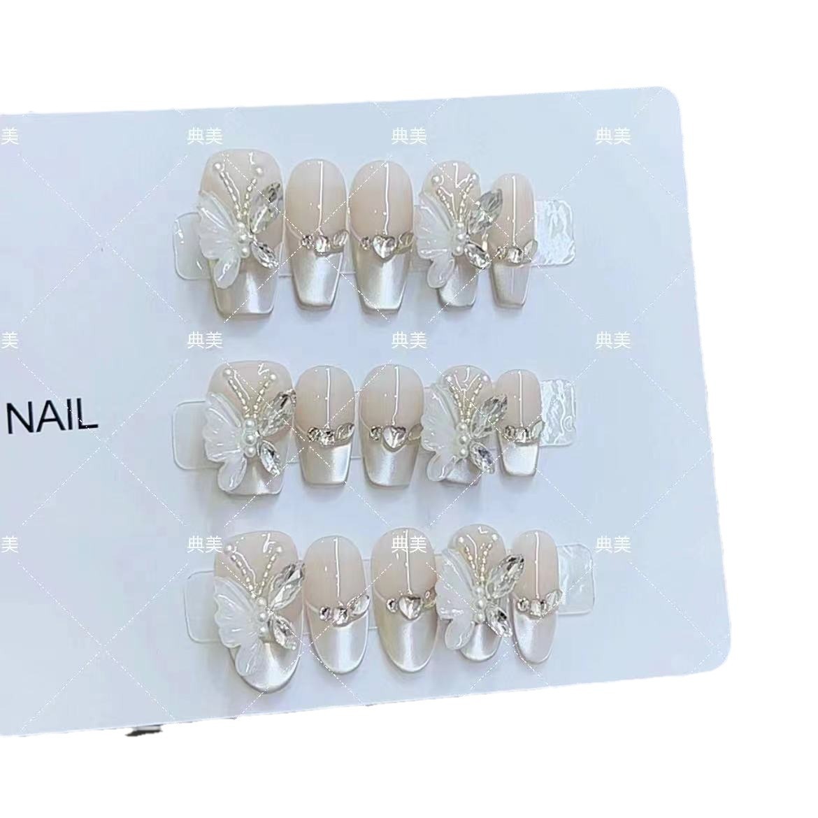 奈姿 纯手工光疗穿戴甲蝴蝶精灵批发成品重复使用美甲贴片可拆