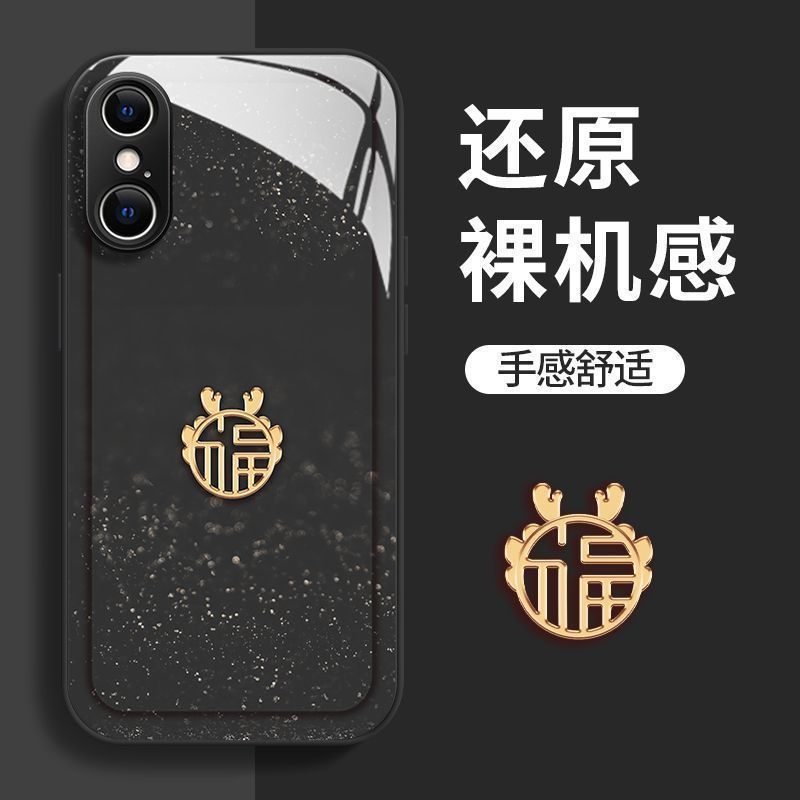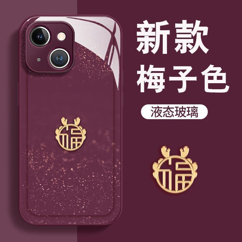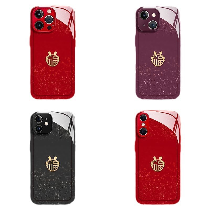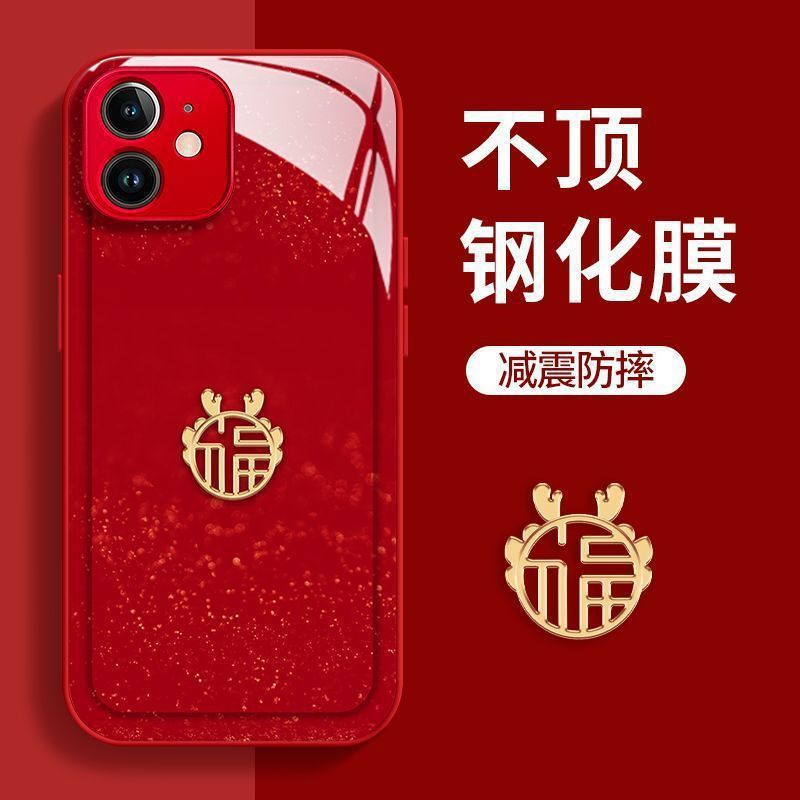 适用苹果15新款手机壳14中国红13/11龙年XR玻璃12闪闪XSMAX情侣7p
